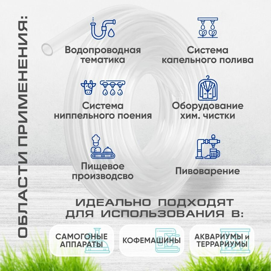 Шланг ПВХ прозрачный пищевой 10 мм, стенка 1.5, 5 м / Трубка ПВХ / Трубка капилярка