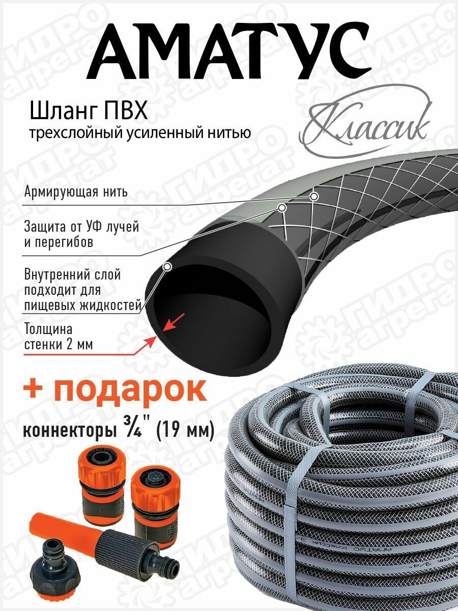 Шланг поливочный Гидроагрегат АМАТУС Классик, 3/4 дюйма, 20 м, коннекторы в комплекте интересное: