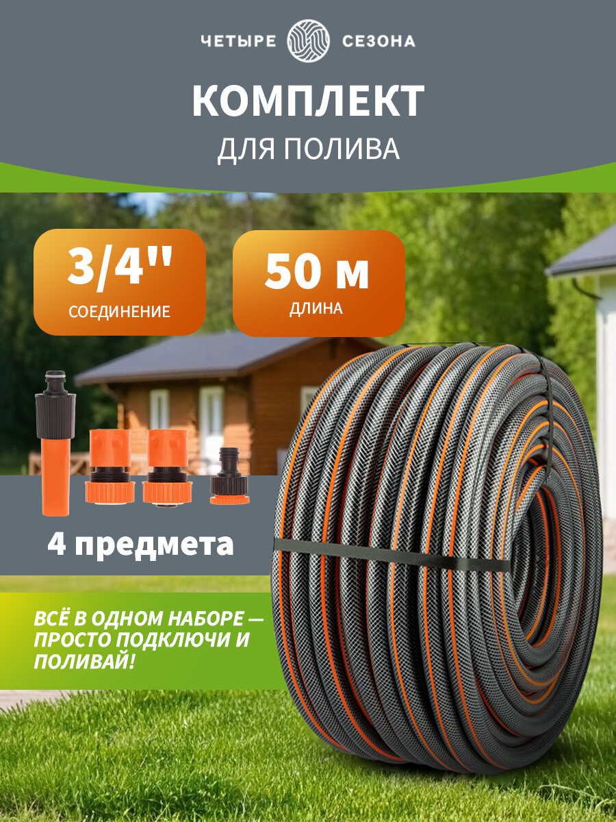 Шланг поливочный садовый ПВХ 3/4" 3-х слойный армированный длина 25 метров Четыре Сезона