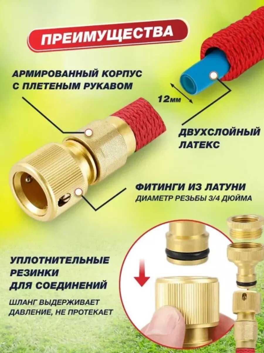 Шланг Magic Garden Hose, растягивающийся, двухслойный, для полива, мойки авто, садового участка