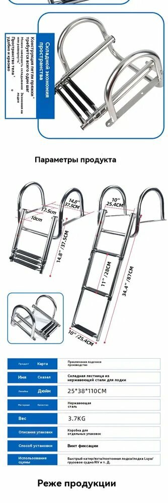 Лестница для бассейна Adventure Boating, нержавеющая сталь, нескользящие ступени, 3 ступени интересное: