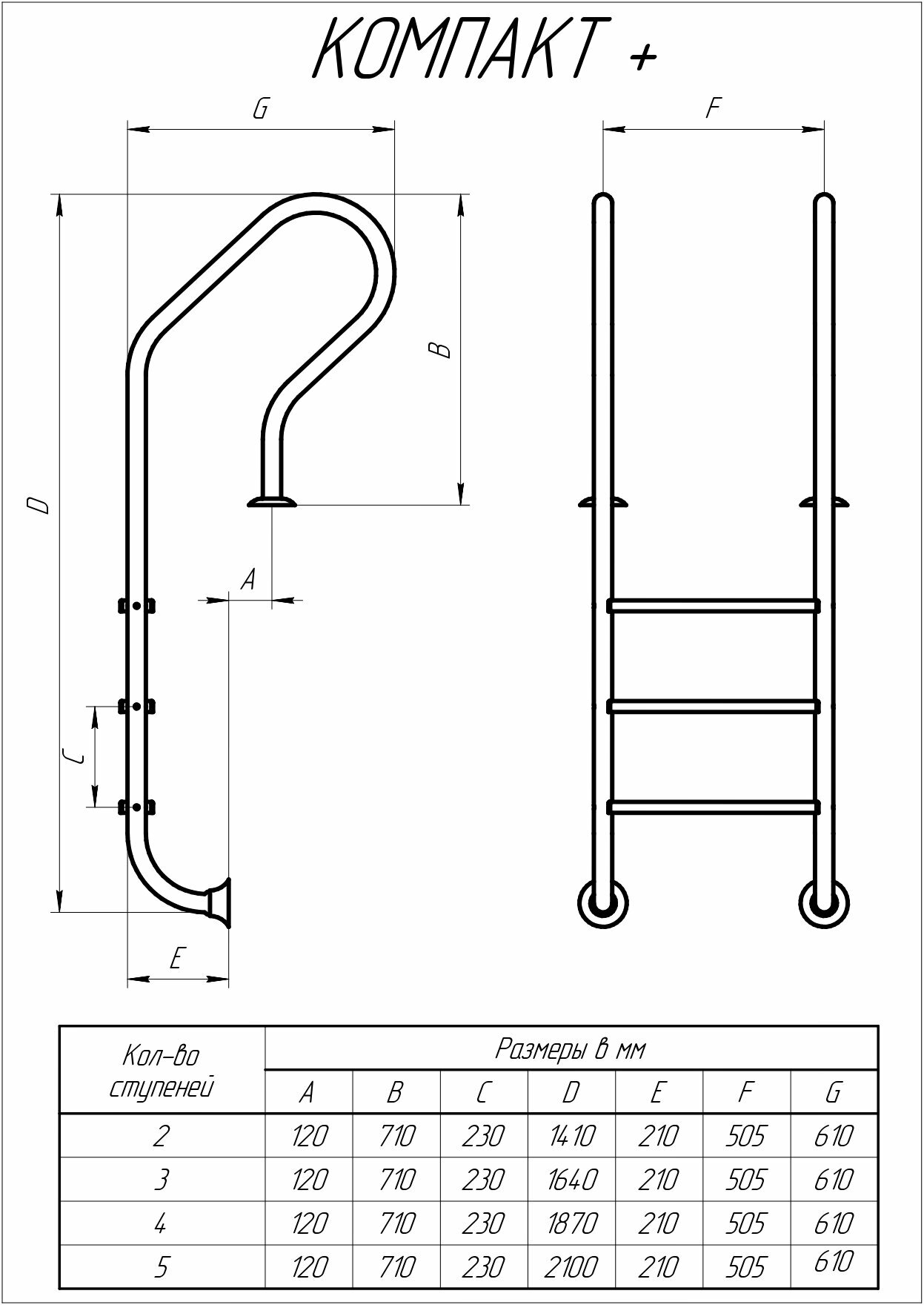 Лестница Лагуна Компакт Плюс, односторонняя, AISI-304, 4 ступени интересное: