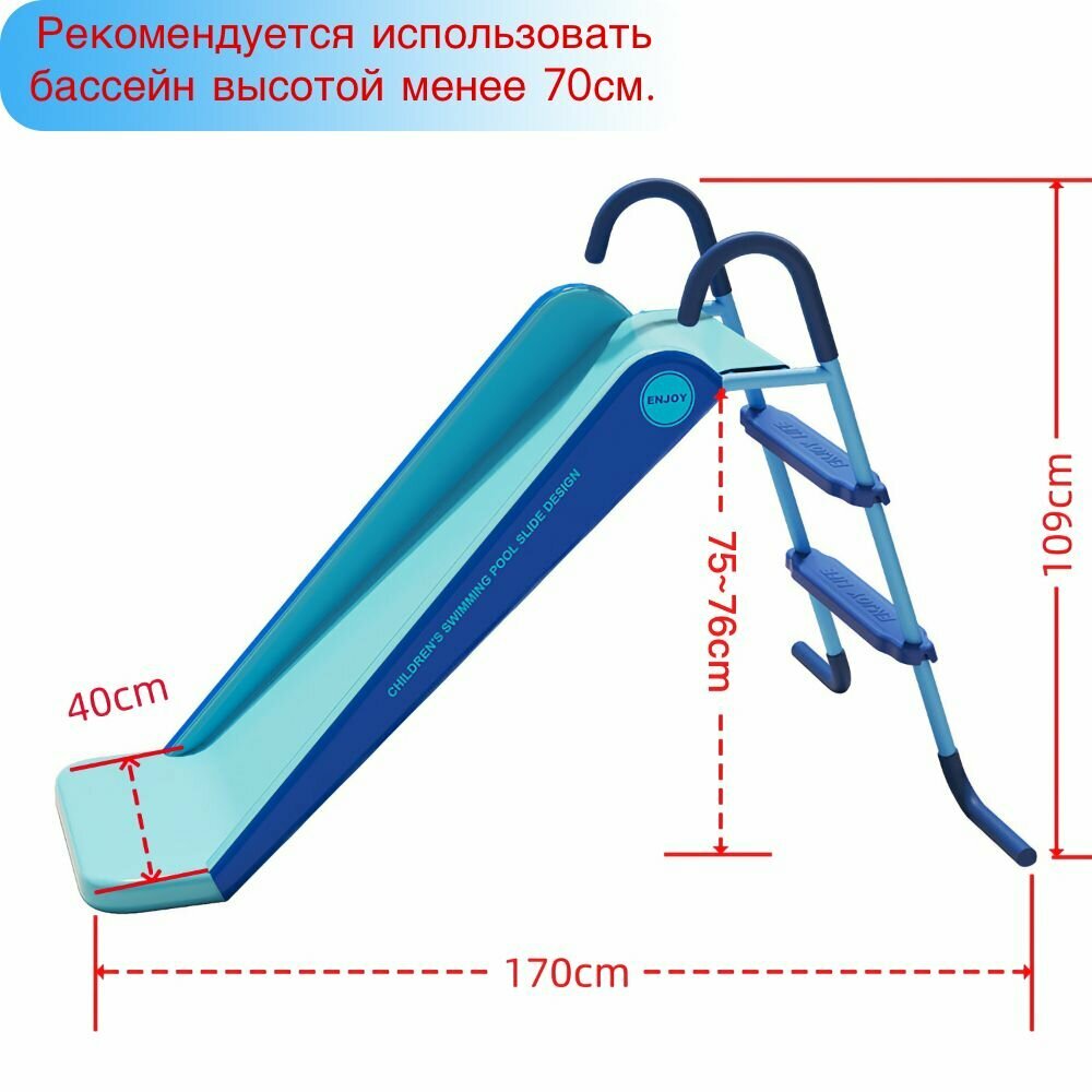 Горка каркасного бассейна, Рост 109 см, длина 170 см, для детей и семьи, светло-голубой интересное: