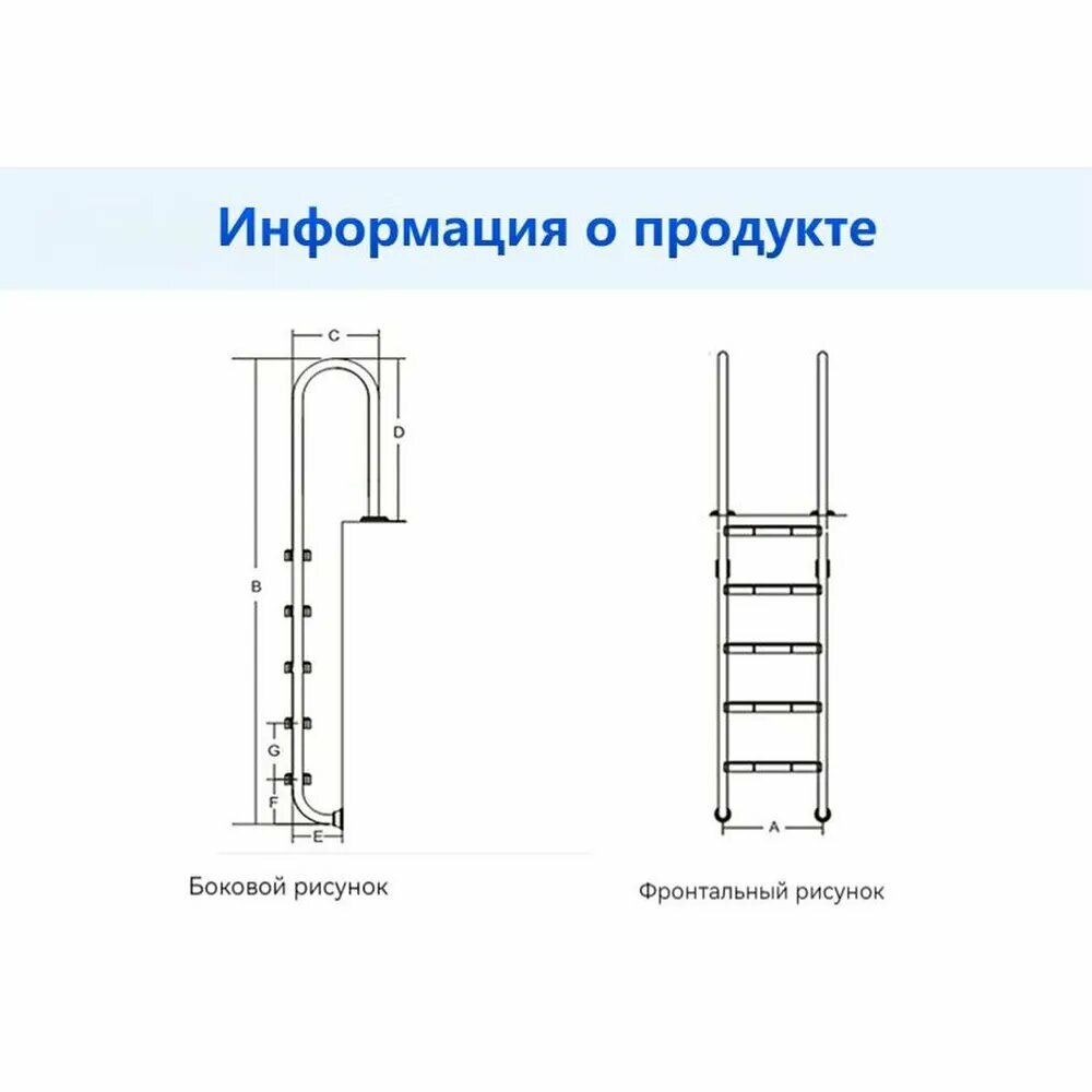 Лестница для бассейна Pool King усиленная 5 ступеней (узкий борт)