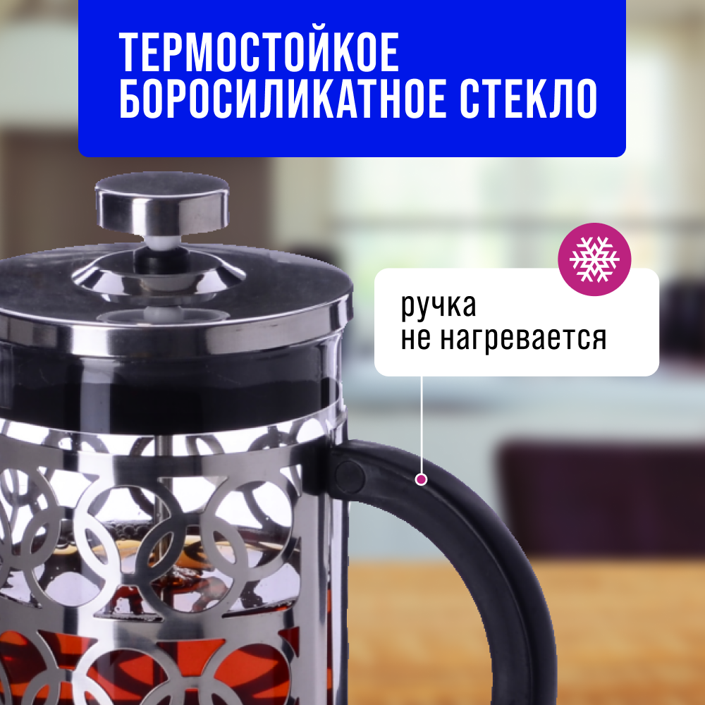 Френч-пресс Satoshi "Бордо", жаропрочное стекло, серебристый, 600 мл