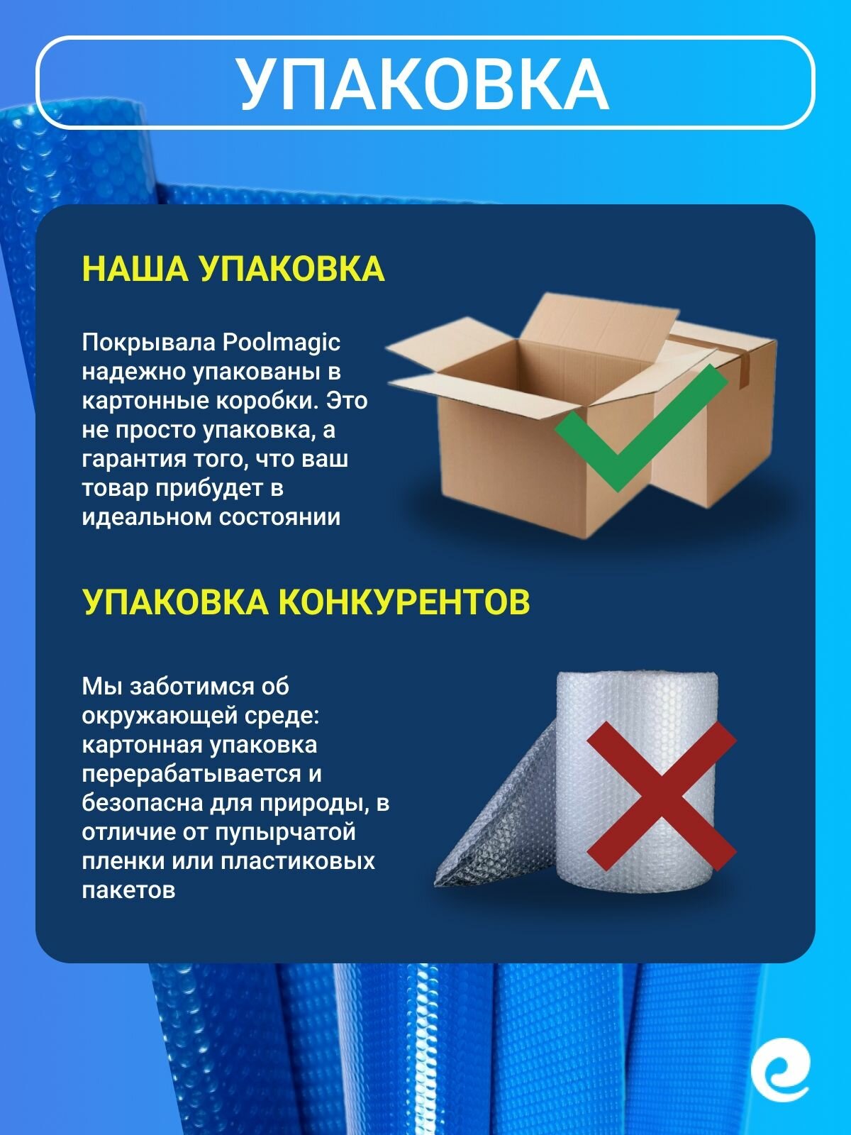 Согревающее покрывало Poolmagic "BIG", пузырьковое, плавающее, 4x3.5м, синее, серебристое