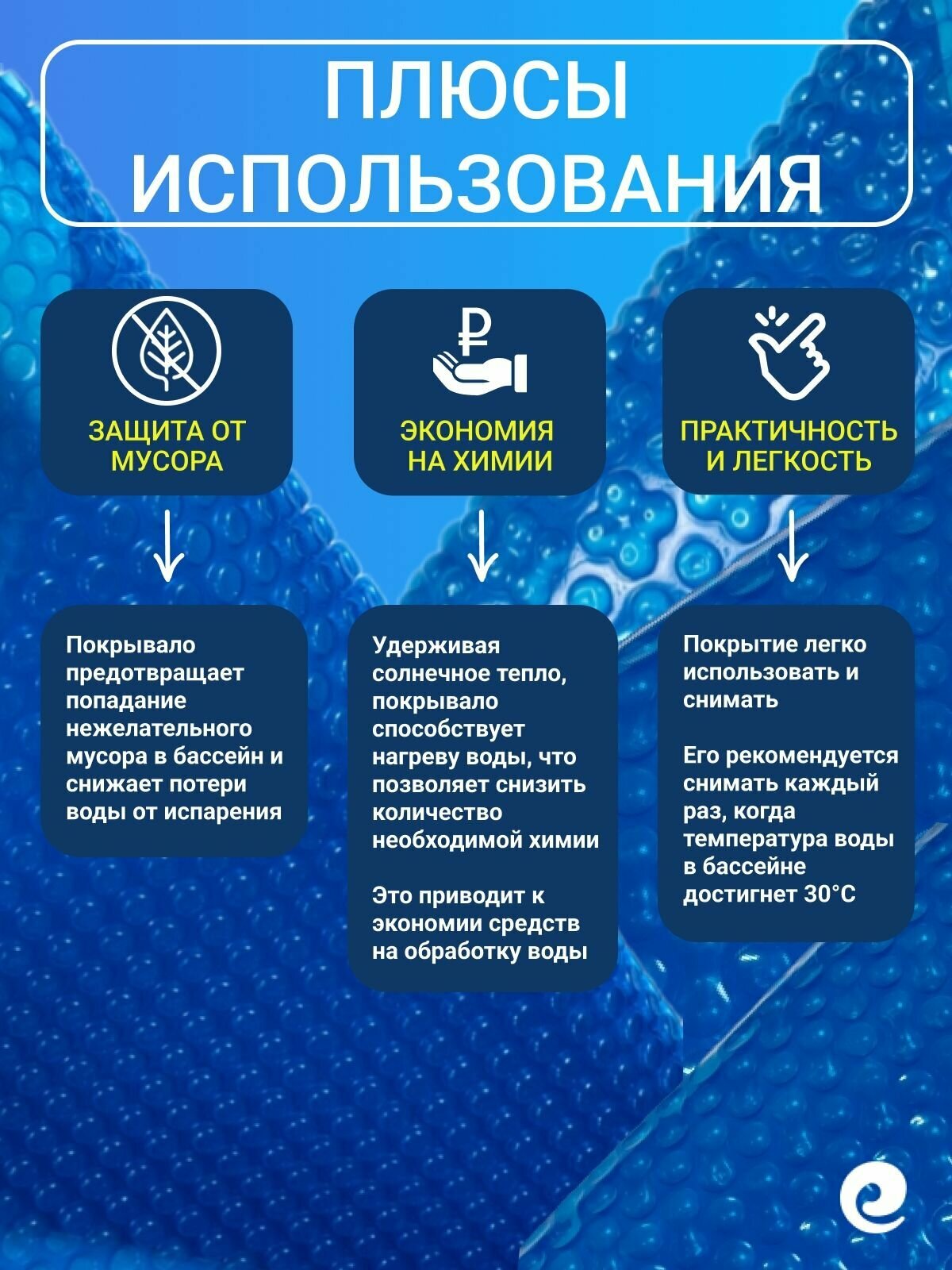 СохранитьСогревающее покрывало 8.5х4 м Poolmagic SINGLE BUBBLE пузырьковое плавающее, синее/серебристое, 400 мкм, тент для бассейна / Аксессуары для бассейна интересное:
