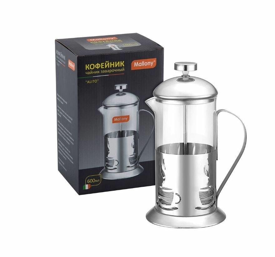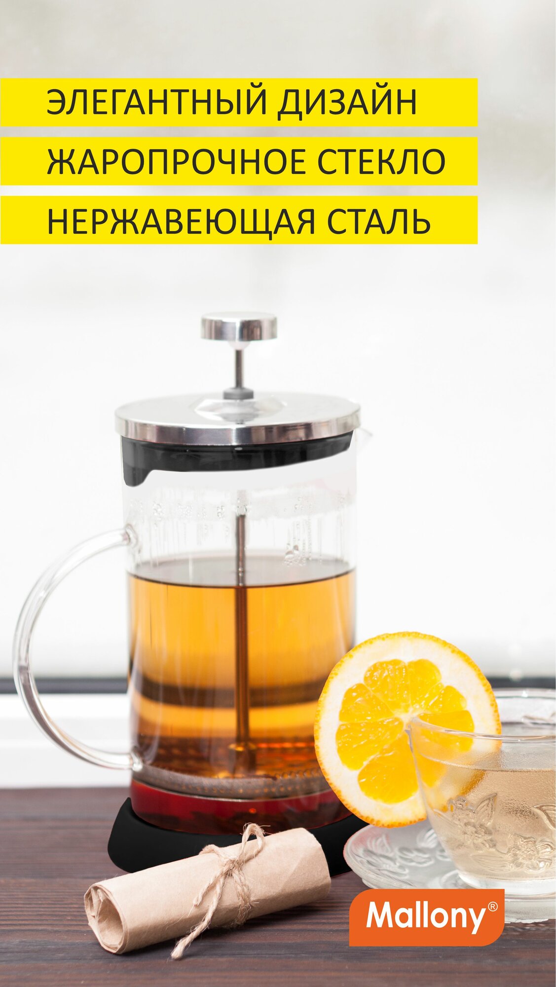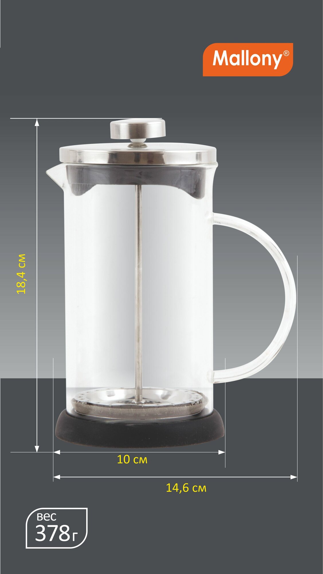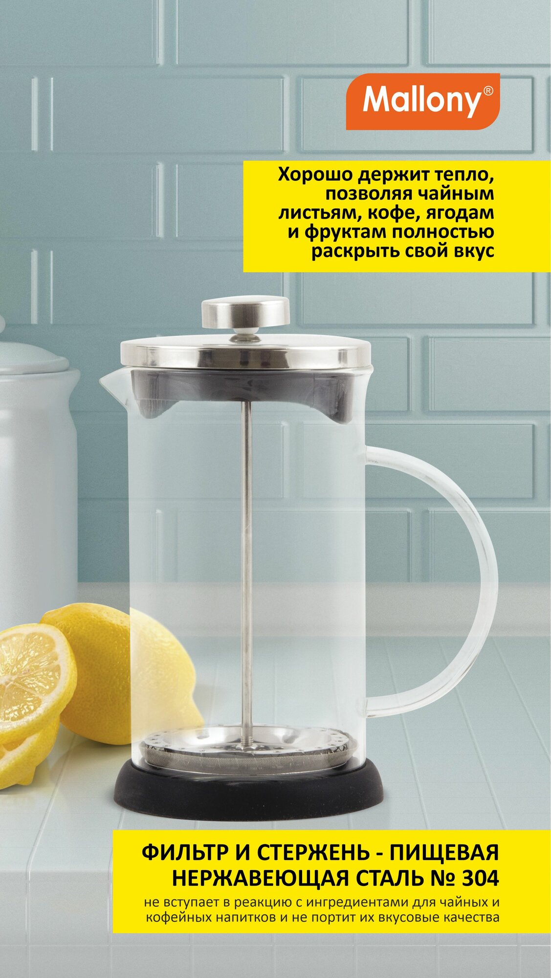 Mallony Чайник/кофейник (кофе-пресс) Nero 600 мл из боросиликатного стекла, цвет черный (950066) .