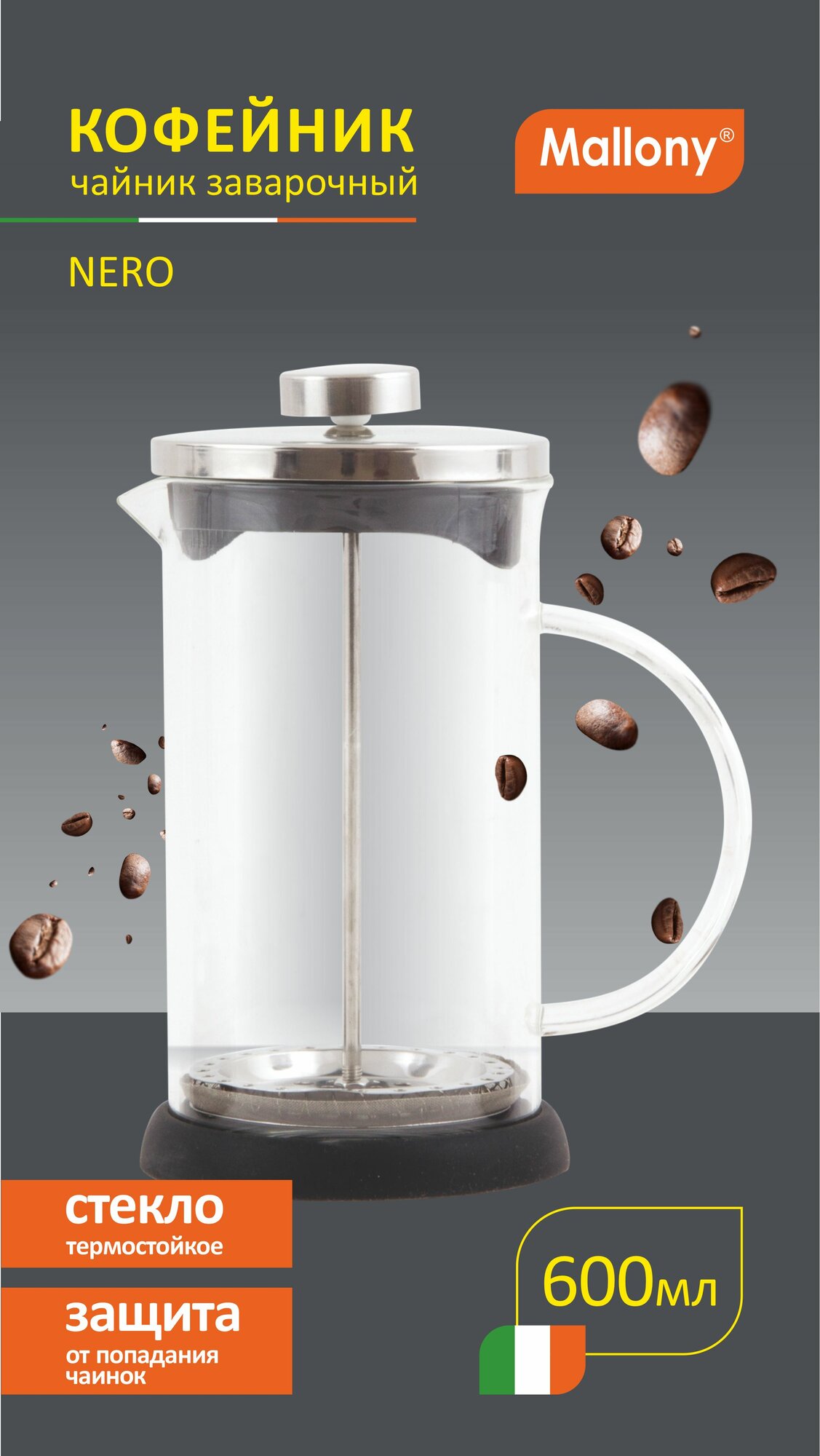 Mallony Чайник/кофейник (кофе-пресс) Nero 600 мл из боросиликатного стекла, цвет черный (950066) .