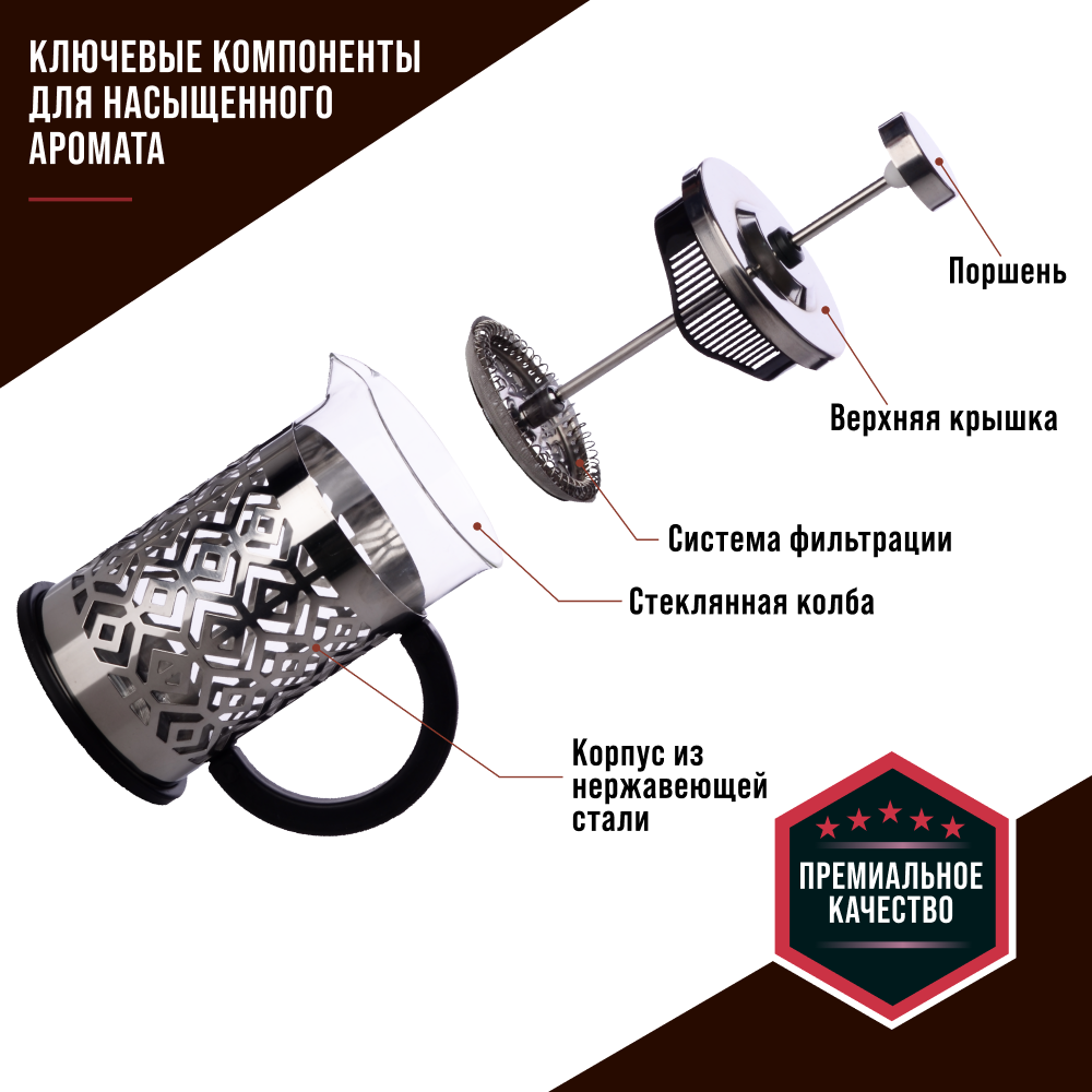 Френч-пресс Satoshi "Бордо", жаропрочное стекло, серебристый, 600 мл