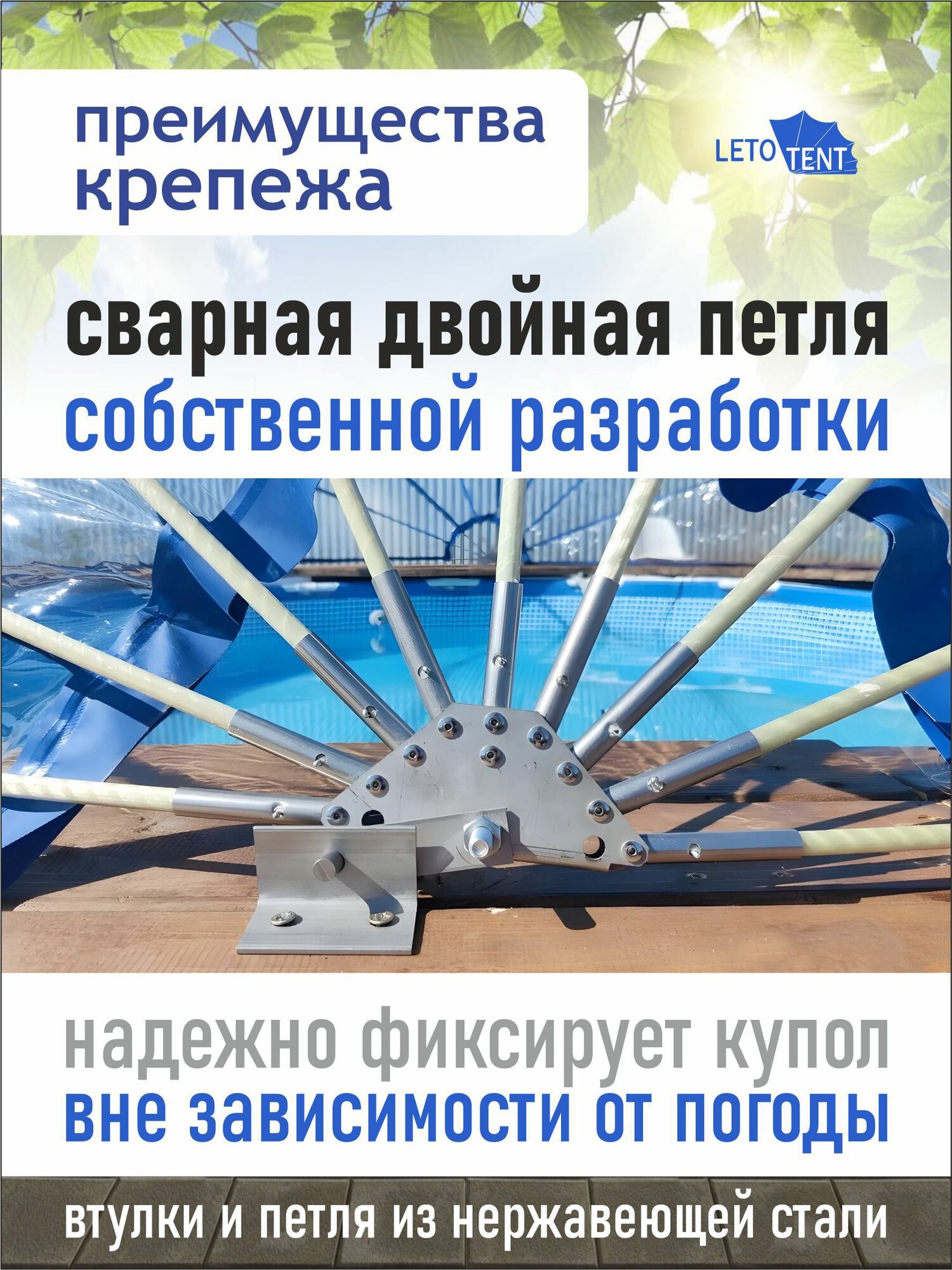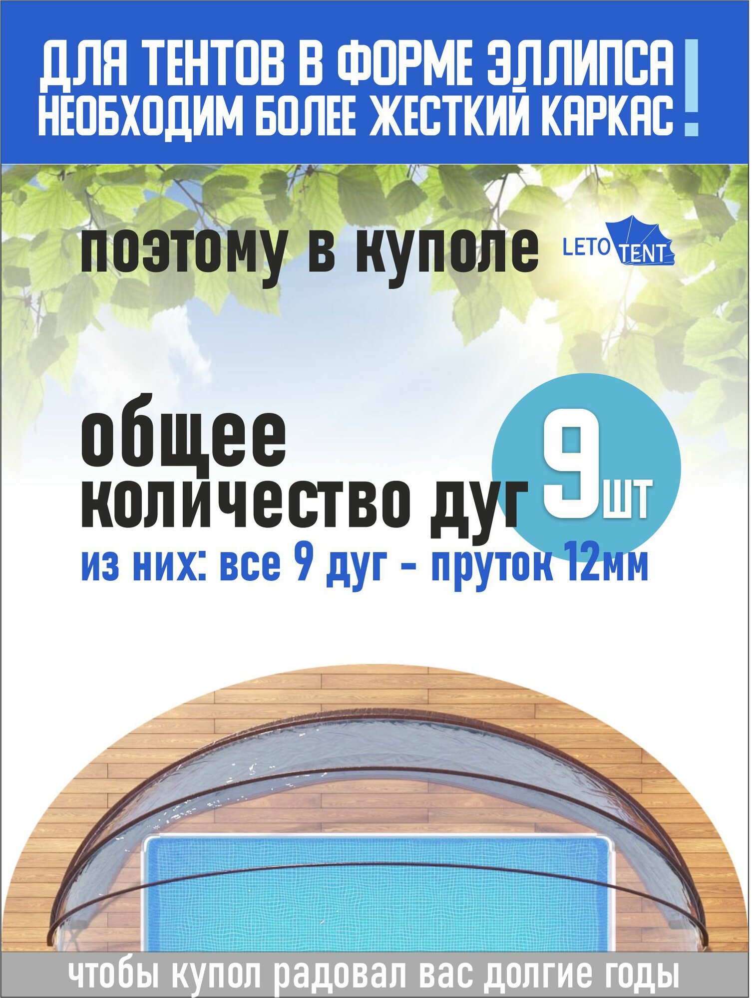 Купол-Тент для бассейна Летотент эллипс 4,7*6,7м 300 микрон 9 дуг/4ус