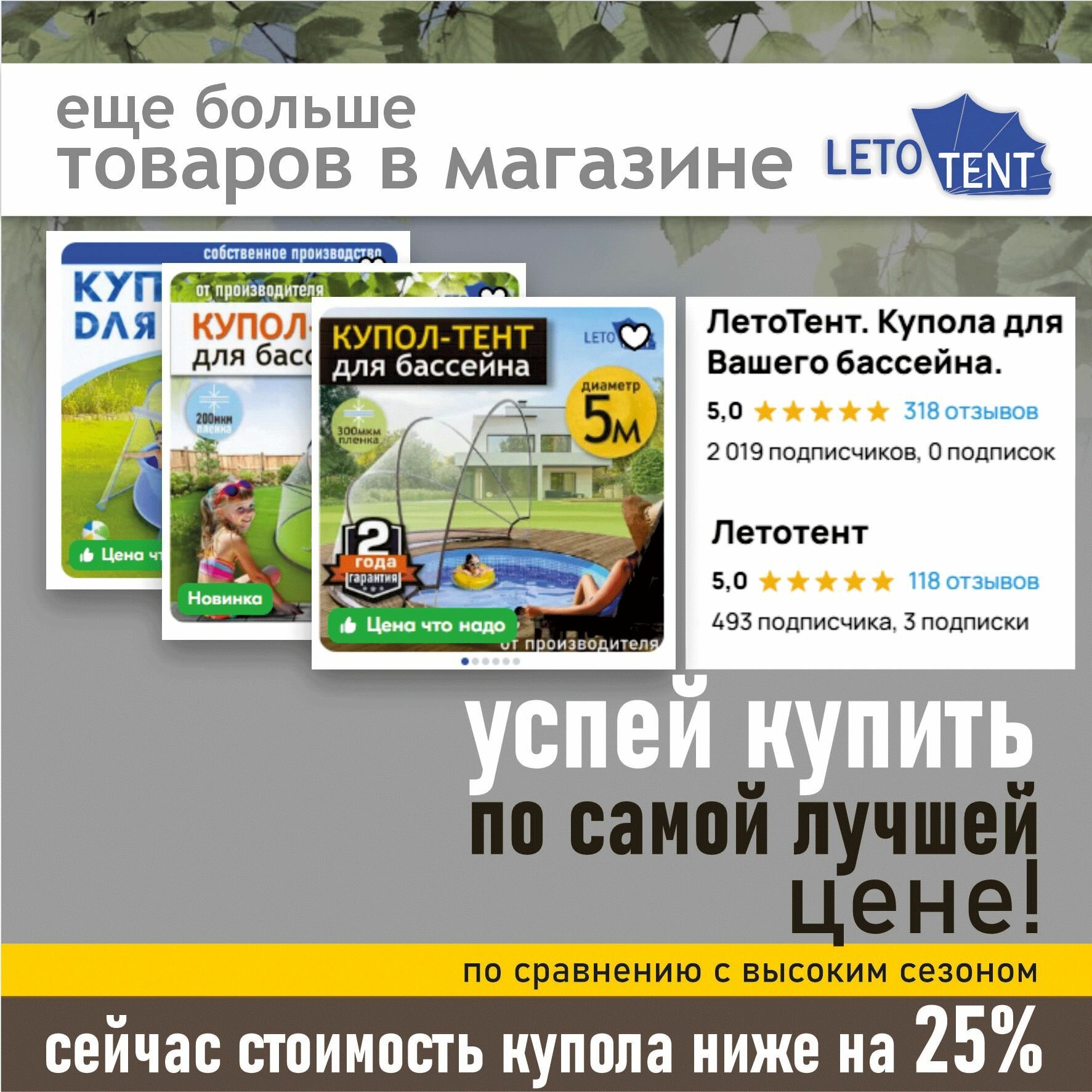 СохранитьКупол-Тент для бассейна Летотент 5*7м 300 микрон 9 дуг/9ус интересное: