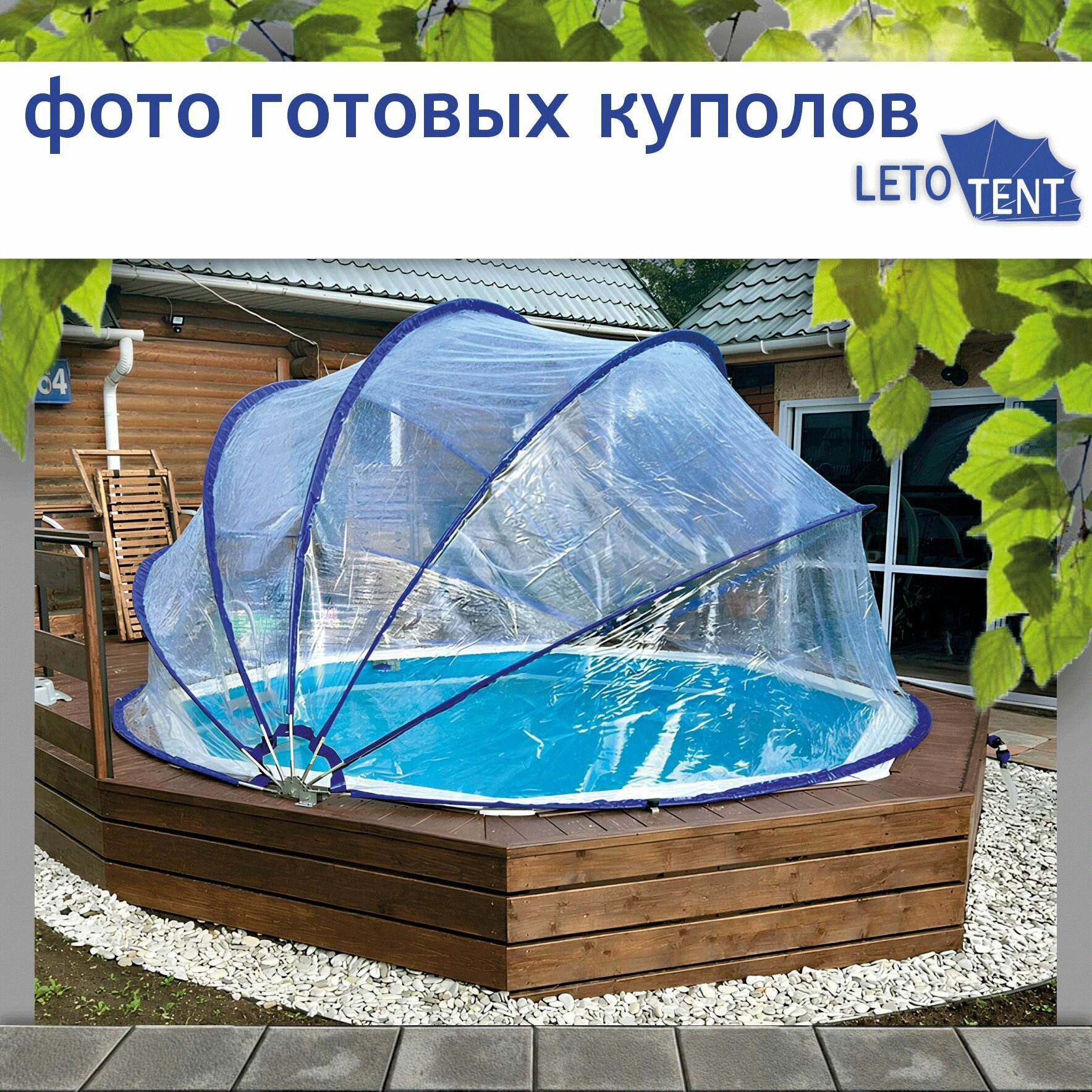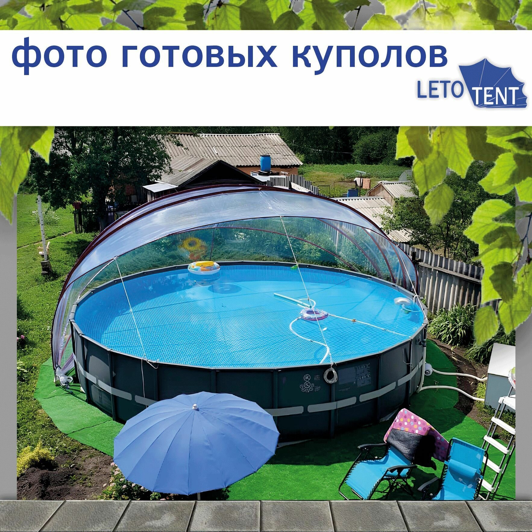 Ниже Вы можете прочитать отзывы на Купол-Тент для бассейна Летотент 5*7м 300 микрон 9 дуг/9ус, ознакомится с подробными характеристиками, посмотреть интересные обзоры и фотографии на Купол-Тент для бассейна Летотент 5*7м 300 микрон 9 дуг/9ус.