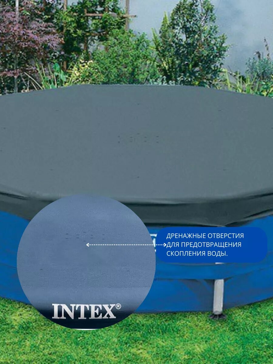 СохранитьТент Intex, для каркасного бассейна, ПВХ, диаметр 457 см, синий интересное: