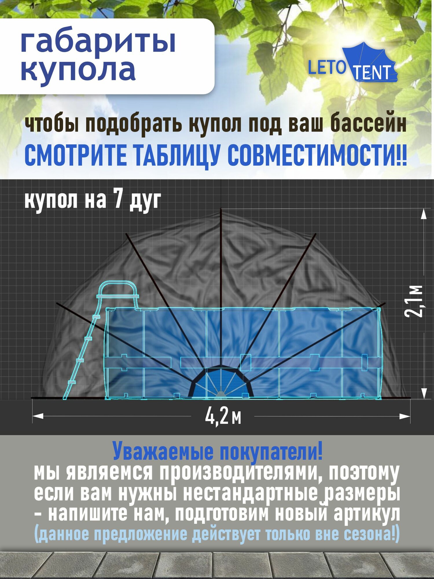 СохранитьКупол Тент для бассейна Летотент 4,2м 200 микрон 7 дуг интересное: