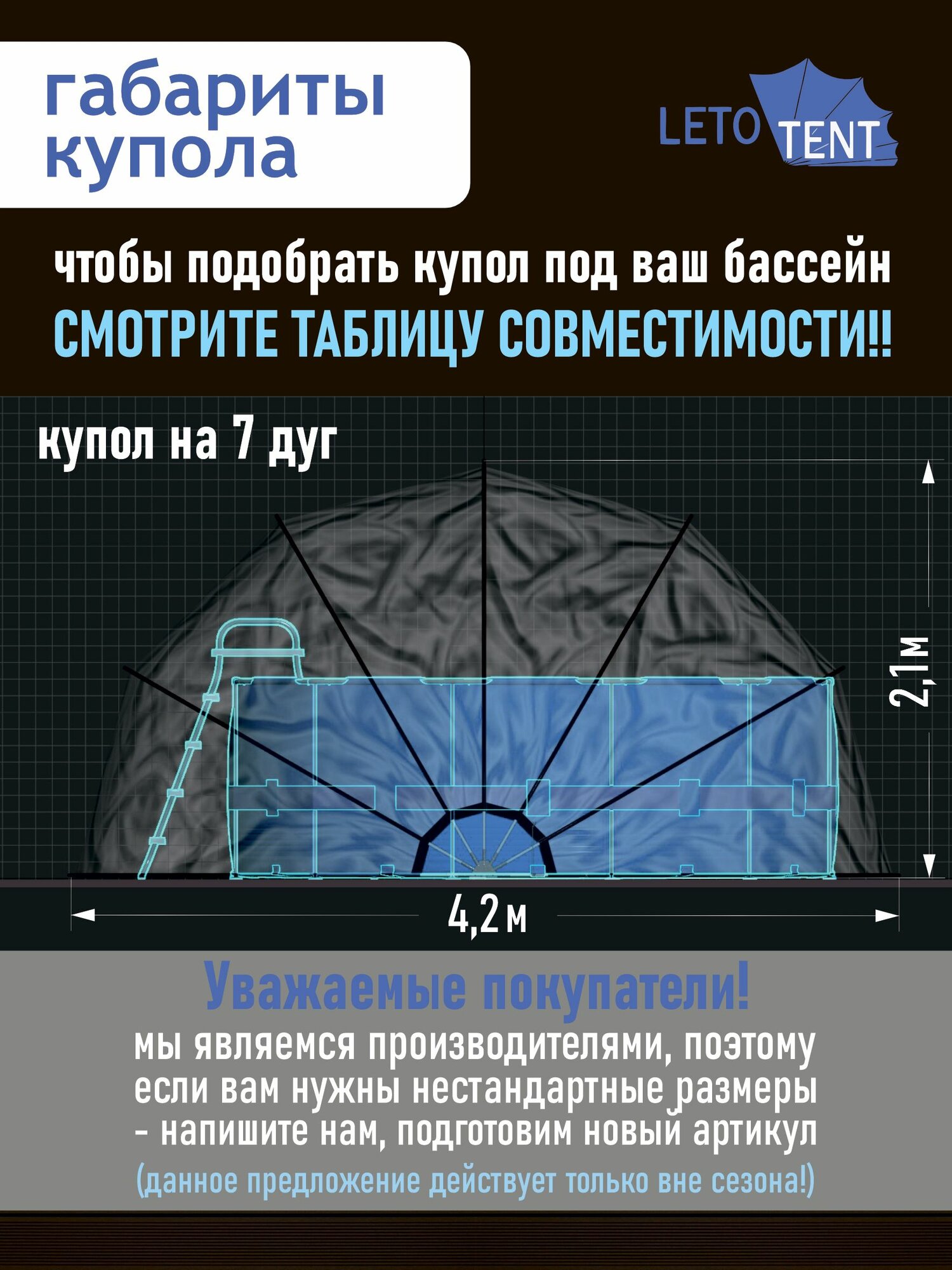 СохранитьКупол-Тент для бассейна Летотент 4,2м 300 микрон 7 дуг интересное: