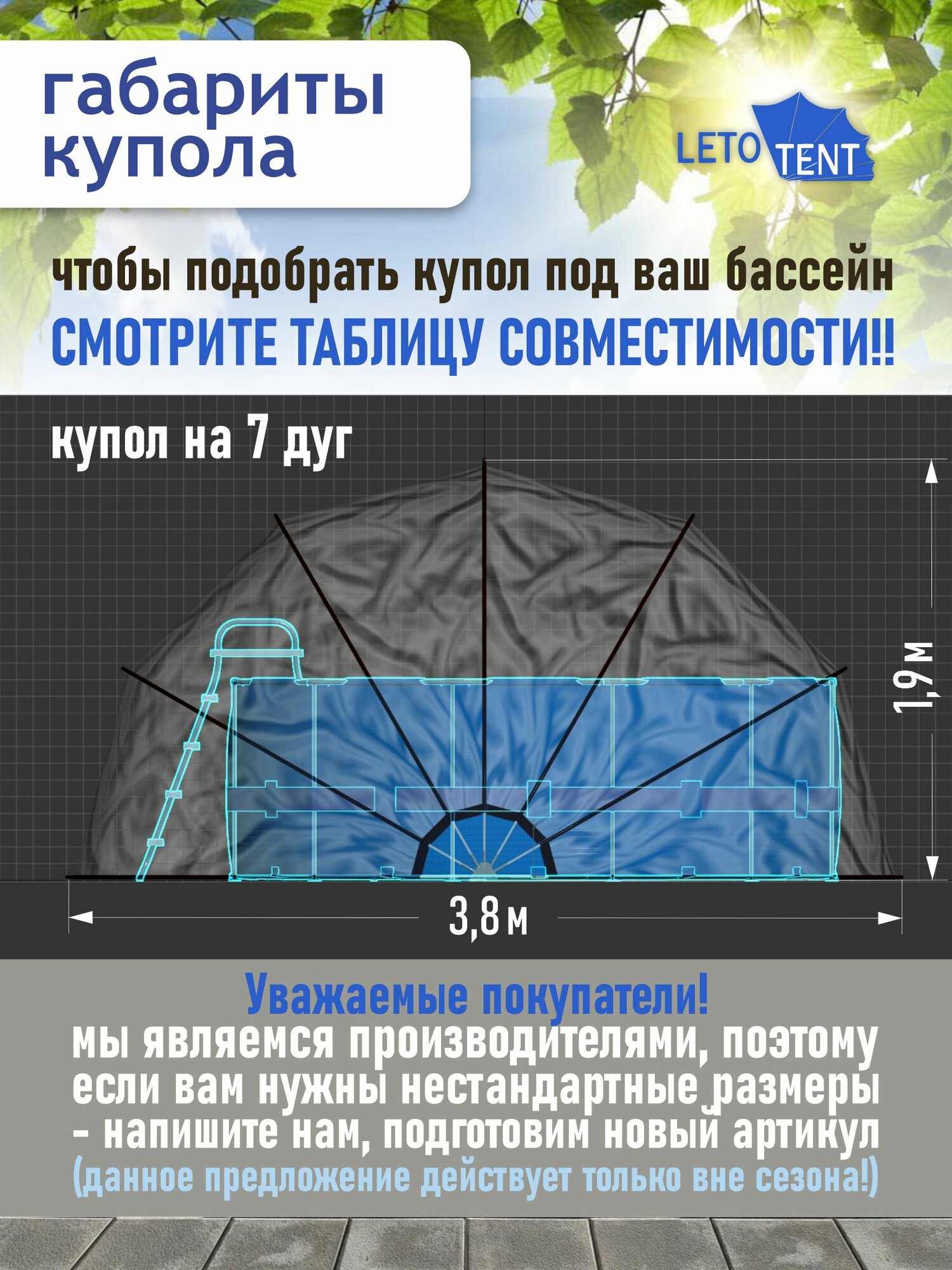 Купол-Тент для бассейна Летотент 3,8м 300 микрон 7 дуг