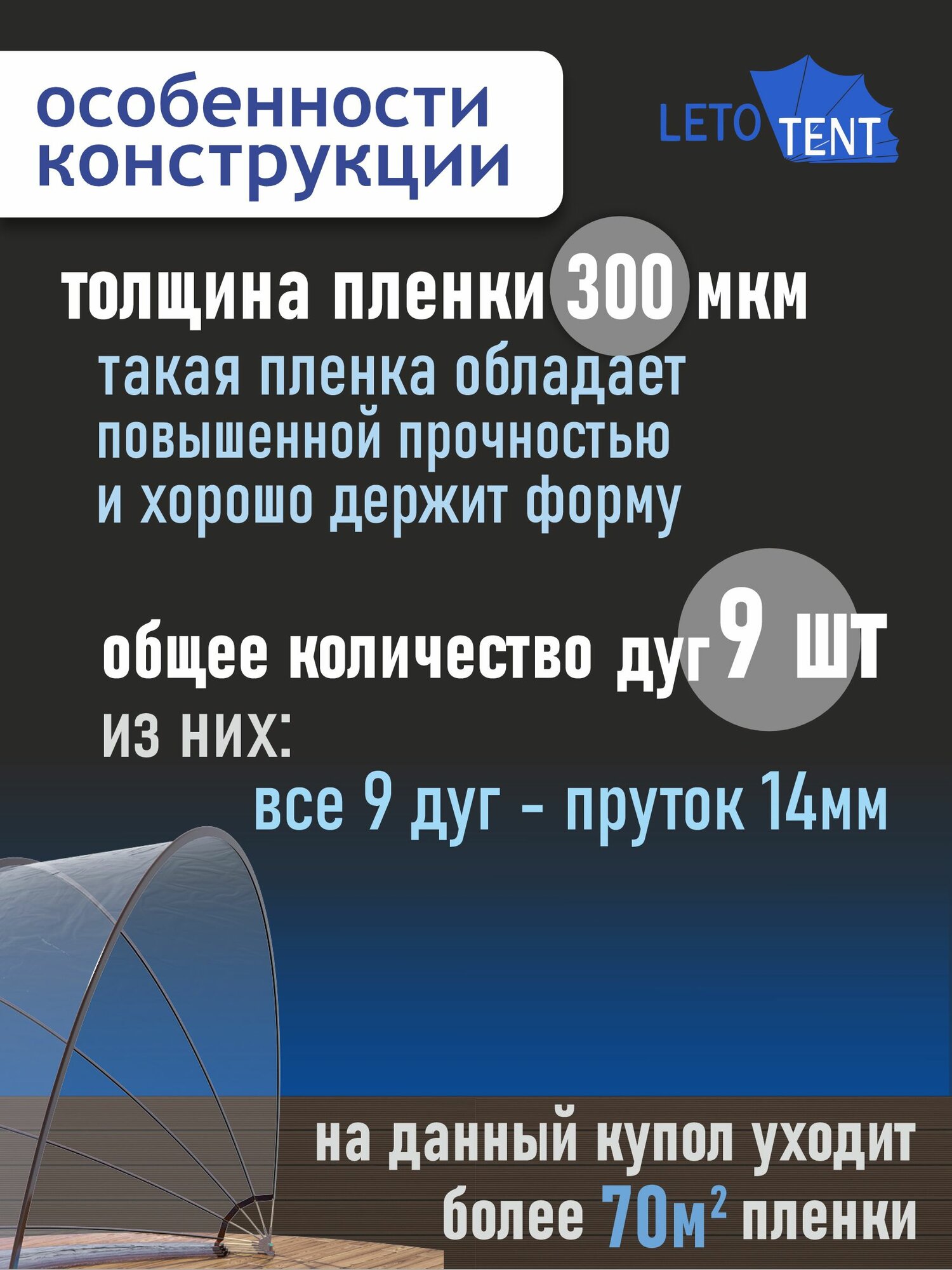 Купол-Тент для бассейна Летотент 3,0м 300 микрон 7 дуг