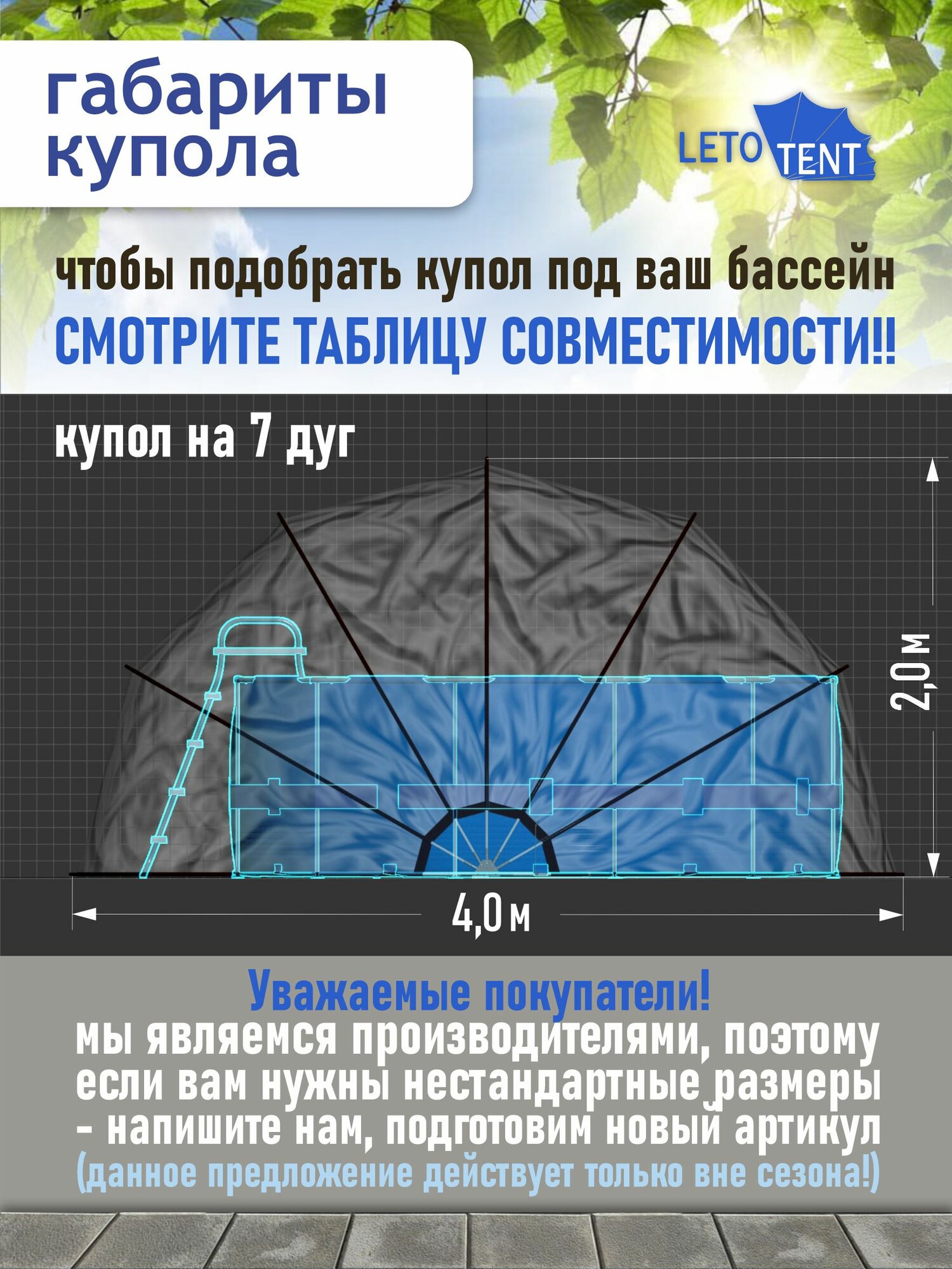 СохранитьКупол Тент для бассейна Летотент 4,0м / 200 микрон / 7 дуг интересное: