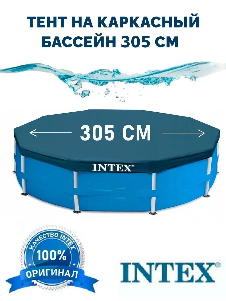 Тент на бассейн, Intex, для каркасных, ПВХ, синий, круглый, 305см интересное: