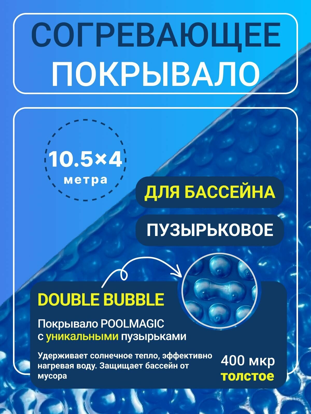 Согревающее покрывало 10.5х6 м Poolmagic DOUBLE BUBBLE пузырьковое плавающее, синее, 400 мкм, тент для бассейна / Аксессуары для бассейна