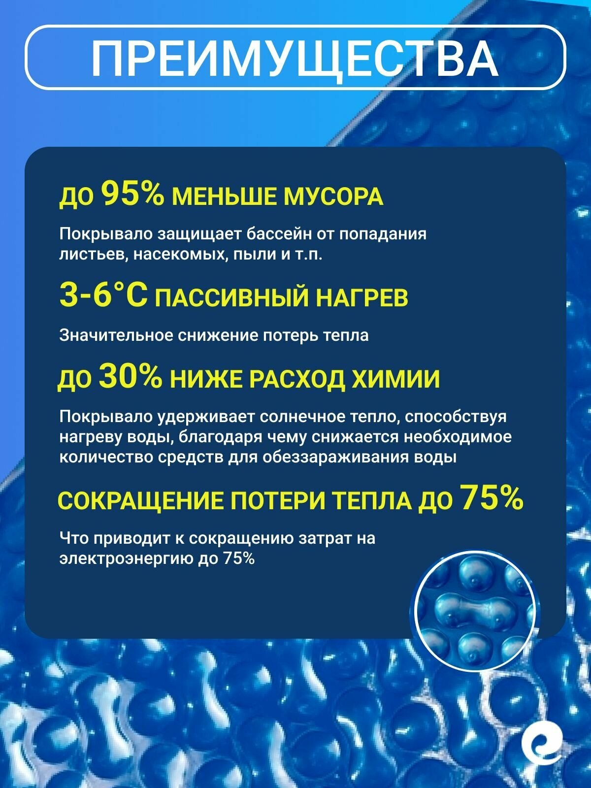 СохранитьСогревающее покрывало 10.5х6 м Poolmagic DOUBLE BUBBLE пузырьковое плавающее, синее, 400 мкм, тент для бассейна / Аксессуары для бассейна интересное: