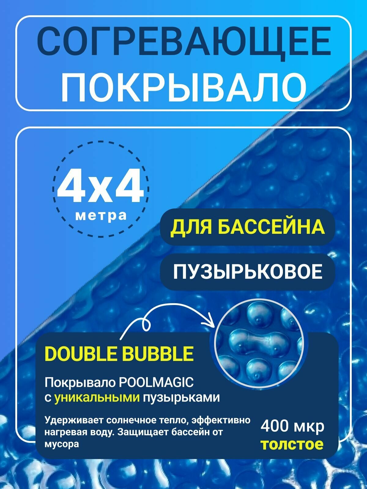 Купить Согревающее покрывало 4х4 м Poolmagic DOUBLE BUBBLE пузырьковое плавающее, синее, 400 мкм, тент для бассейна / Аксессуары для бассейна
