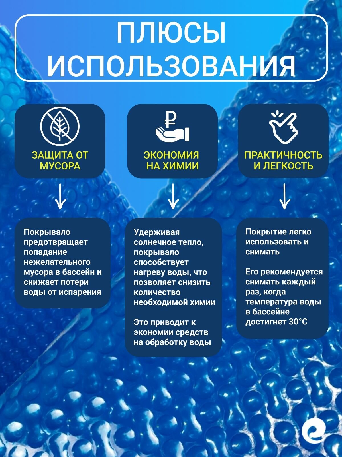 СохранитьСогревающее покрывало 4х4 м Poolmagic DOUBLE BUBBLE пузырьковое плавающее, синее, 400 мкм, тент для бассейна / Аксессуары для бассейна интересное:
