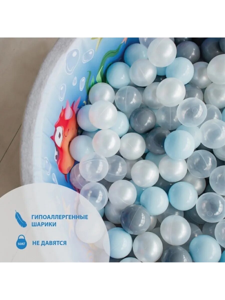 Шарики для сухого бассейна, цвета: светло-голубой, серебро, интересное: