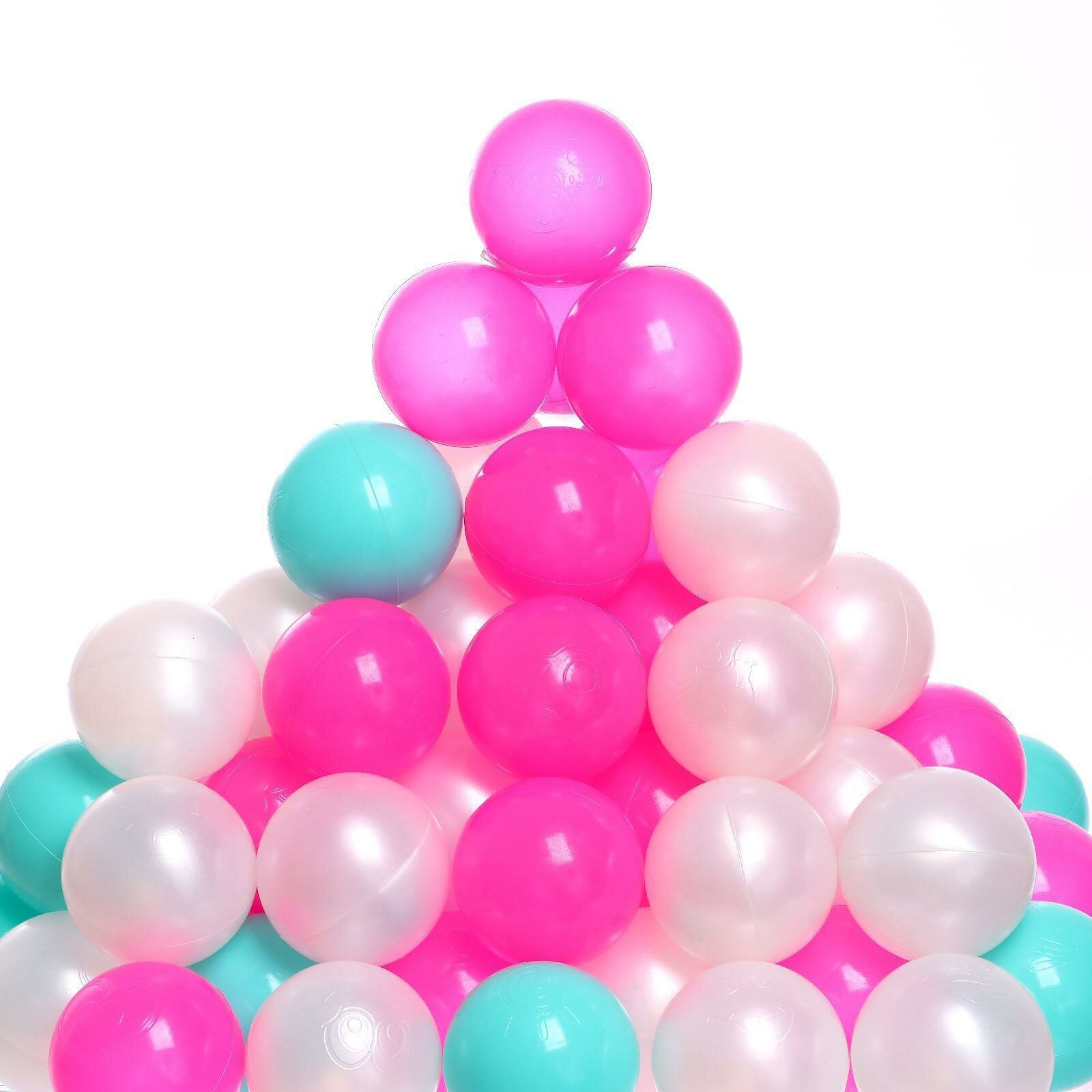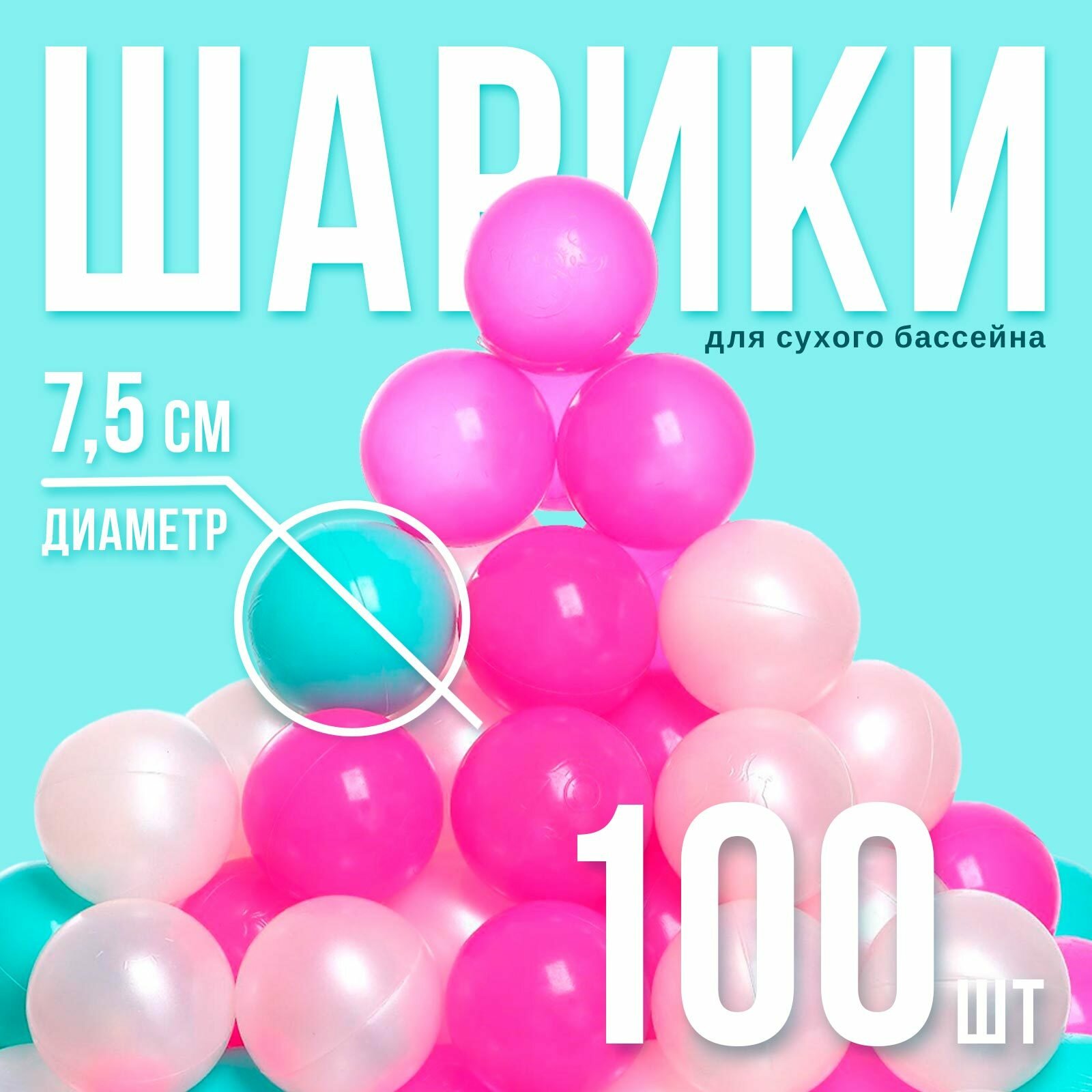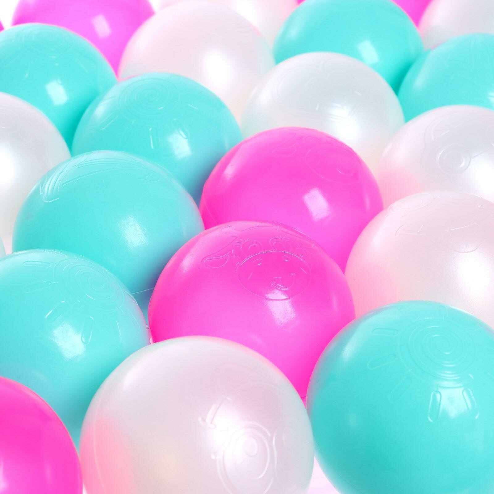 Шарики для сухого бассейна, 100 штук, цвета бирюзовый, маджента, белый перламутр, диаметр шара — 7,5 см интересное: