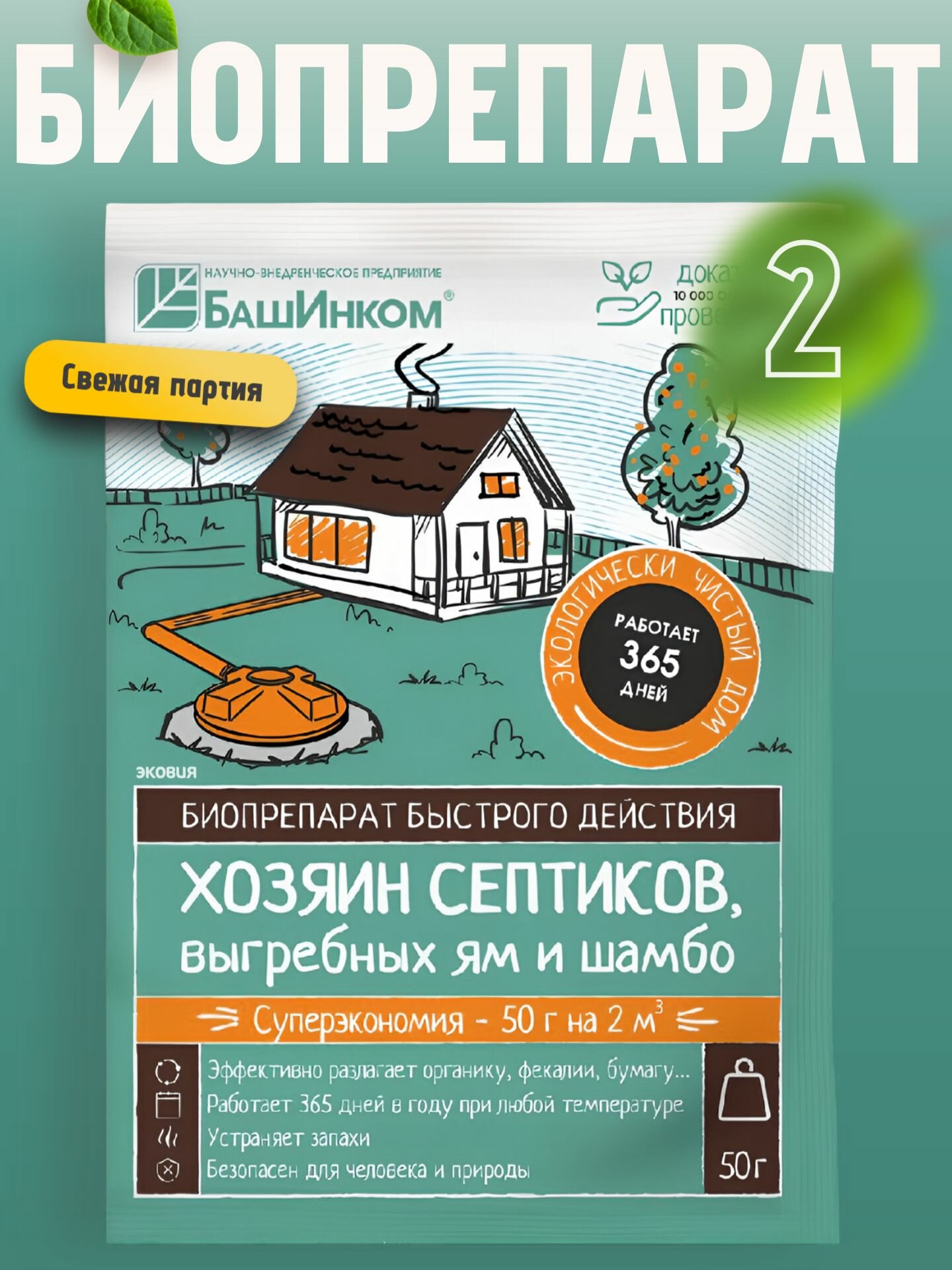 Препарат для туалетов и выгребных ям, септиков, шамбо Хозяин Септиков Башинком 2 уп по 50гр интересное: