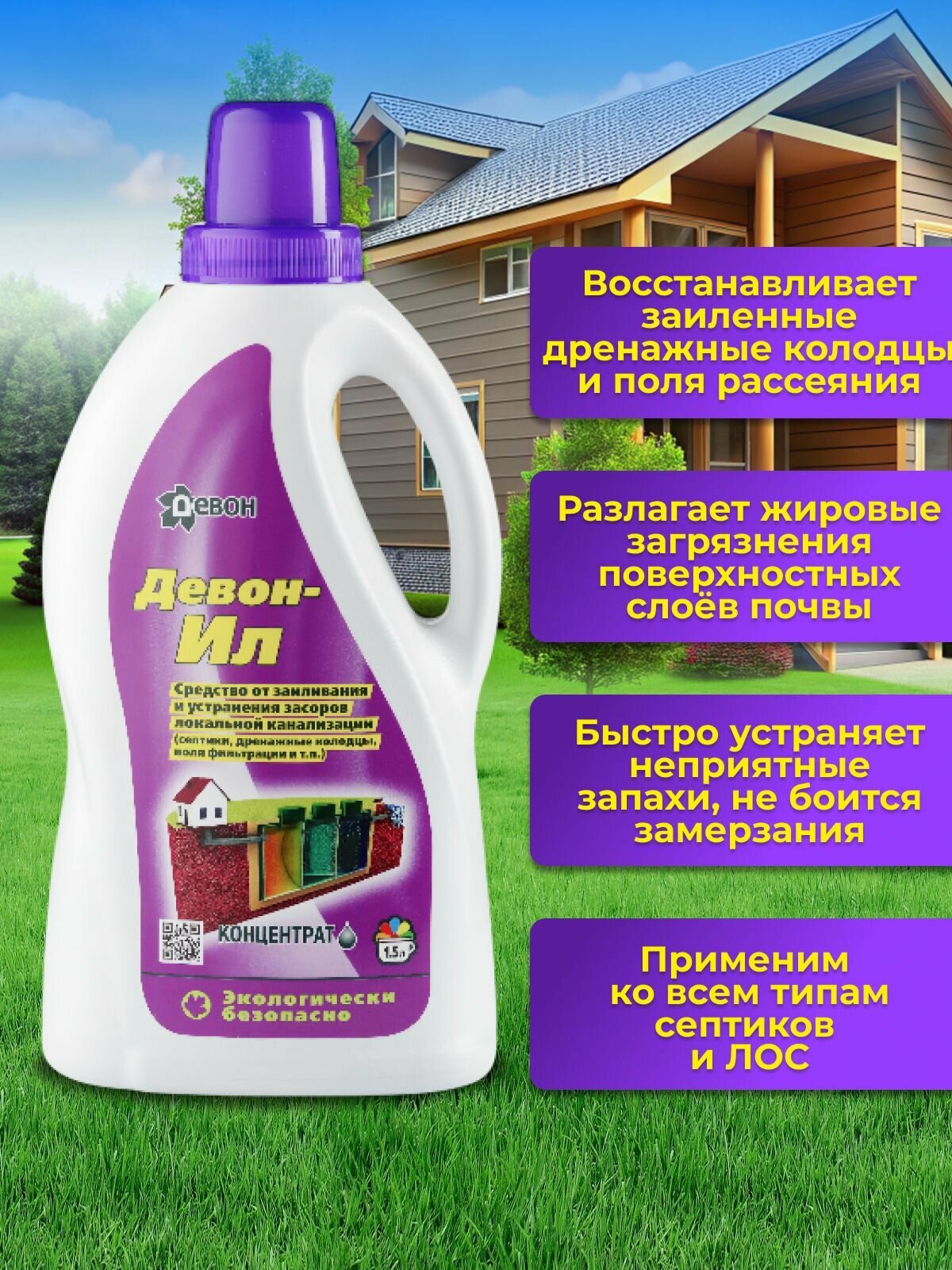 Для септиков. Средство от заиливания и засоров "Девон-Ил" 1,5 л, концентрат интересное: