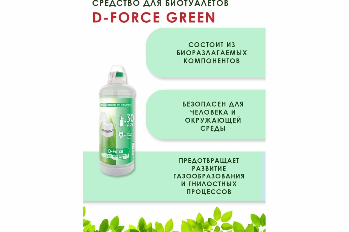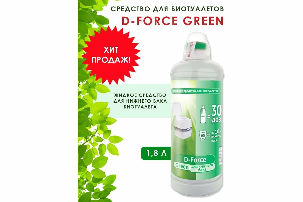 Жидкость для биотуалетов Ваше хозяйство D-Force Green для нижнего бака 1,8 л интересное: