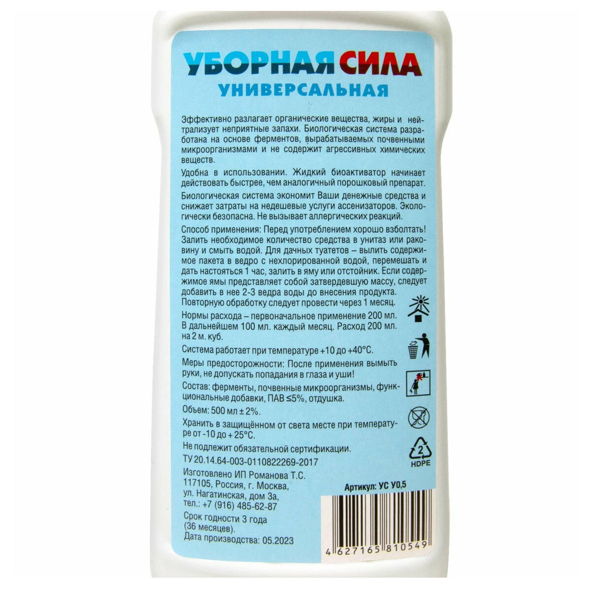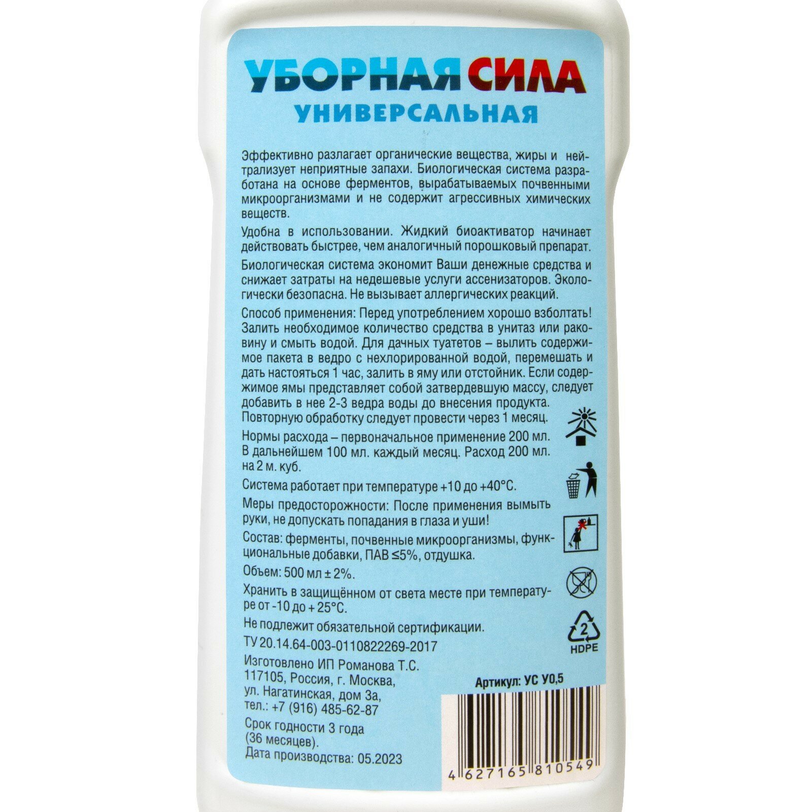 Купить Жидкий БИО универсальный концентрат для септиков и туалетов "Уборная сила" 0,5 л