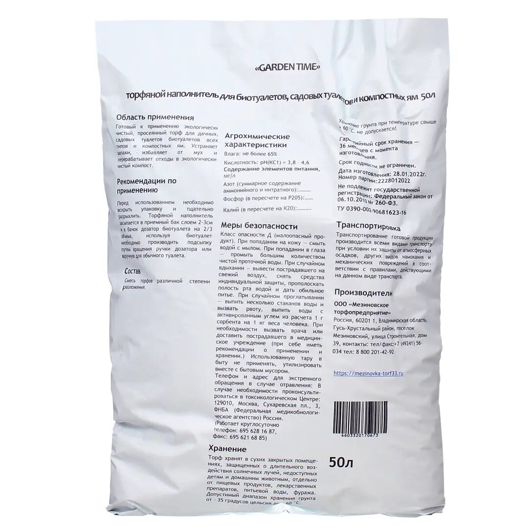 Наполнитель Garden time торфяной для биотуалетов 50л интересное: