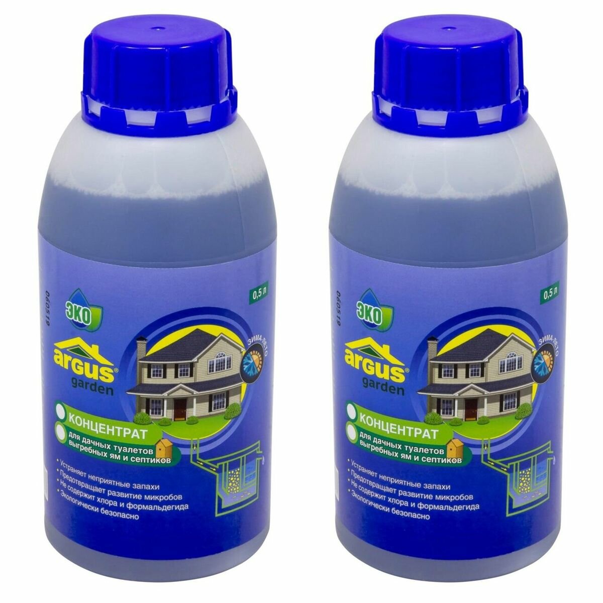 Купить ARGUS GARDEN Жидкость для выгребных ям 0,5л 2 флакона без хлора и формальдегида
