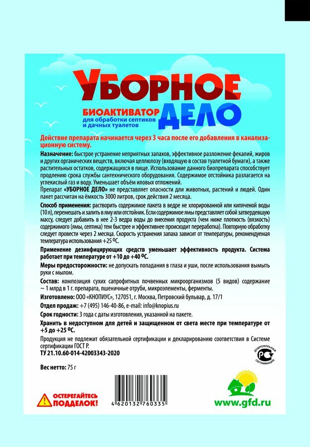 Биоактиватор уборное дело д/дачных туалетов и септиков 75 г, 20х14х1см Арт. УД (Россия) 1шт интересное: