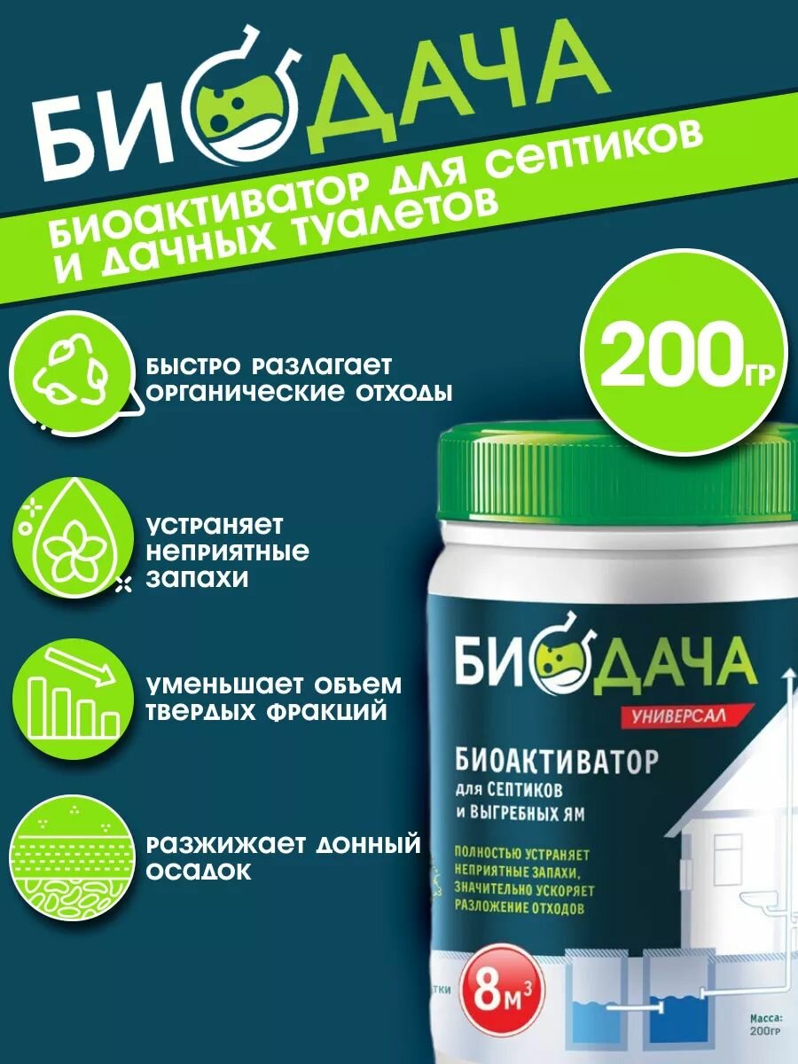 Бактерии для септиков, выгребных ям и дачных туалетов Биодача 200г интересное:
