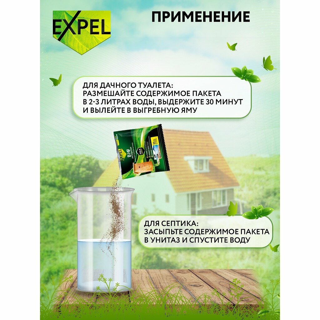 Биоактиватор для дачных туалетов и септиков, Expel, Бактерии, Средство для выгребных ям, 40 г х 8 шт