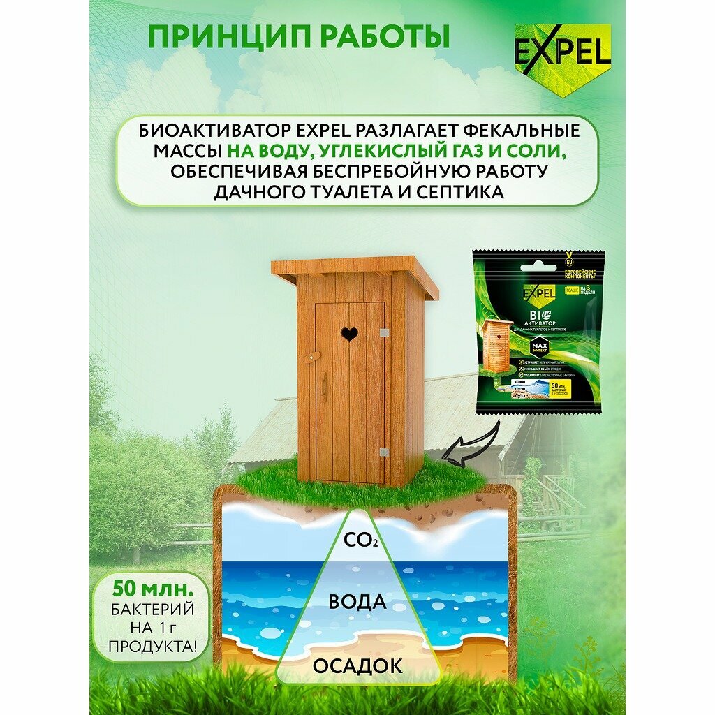 Биоактиватор для септика и дачного туалета Expel Дача 40 г в саше интересное: