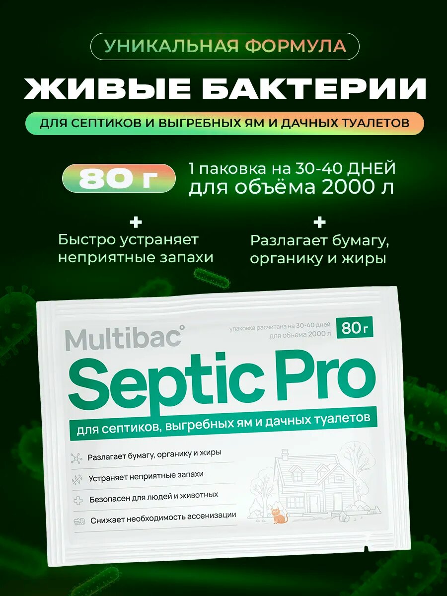 Купить Биоактиватор Multibac Septic Pro , для септика, для выгребных ям , 80 г
