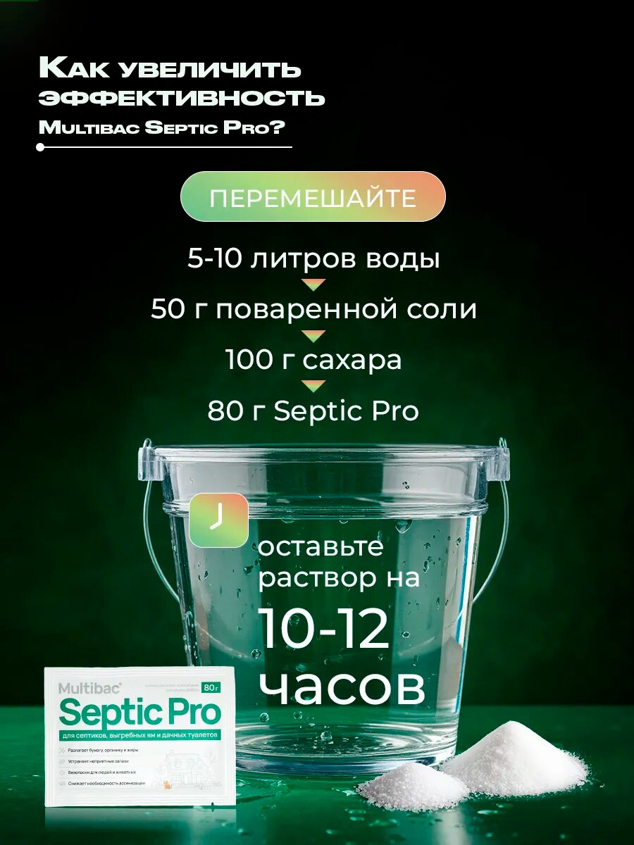 Биоактиватор Multibac Septic Pro , для септика, для выгребных ям , 80 г