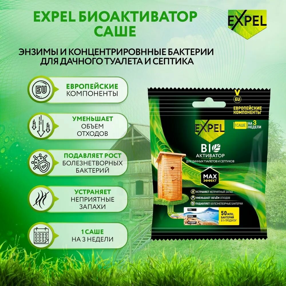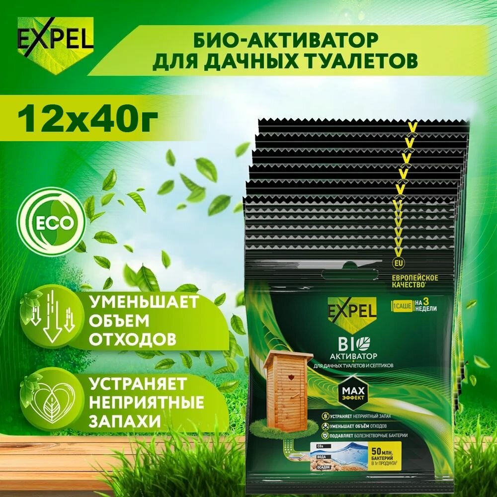 Набор 12 шт. Биоактиватор для дачных туалетов и септиков саше 40г, Expel интересное: