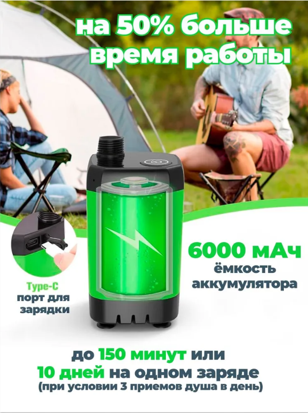 Портативный душ с насосом для дачи и туризма, аккумуляторный