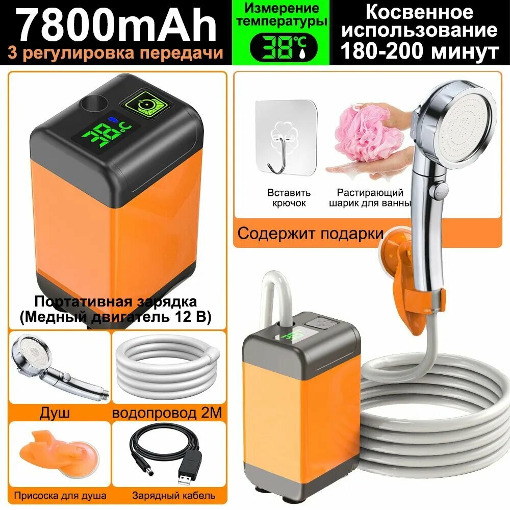 Купить Умный Походный душ для кемпинга и дачи, портативный душ с насосом туристический,7800 мАч