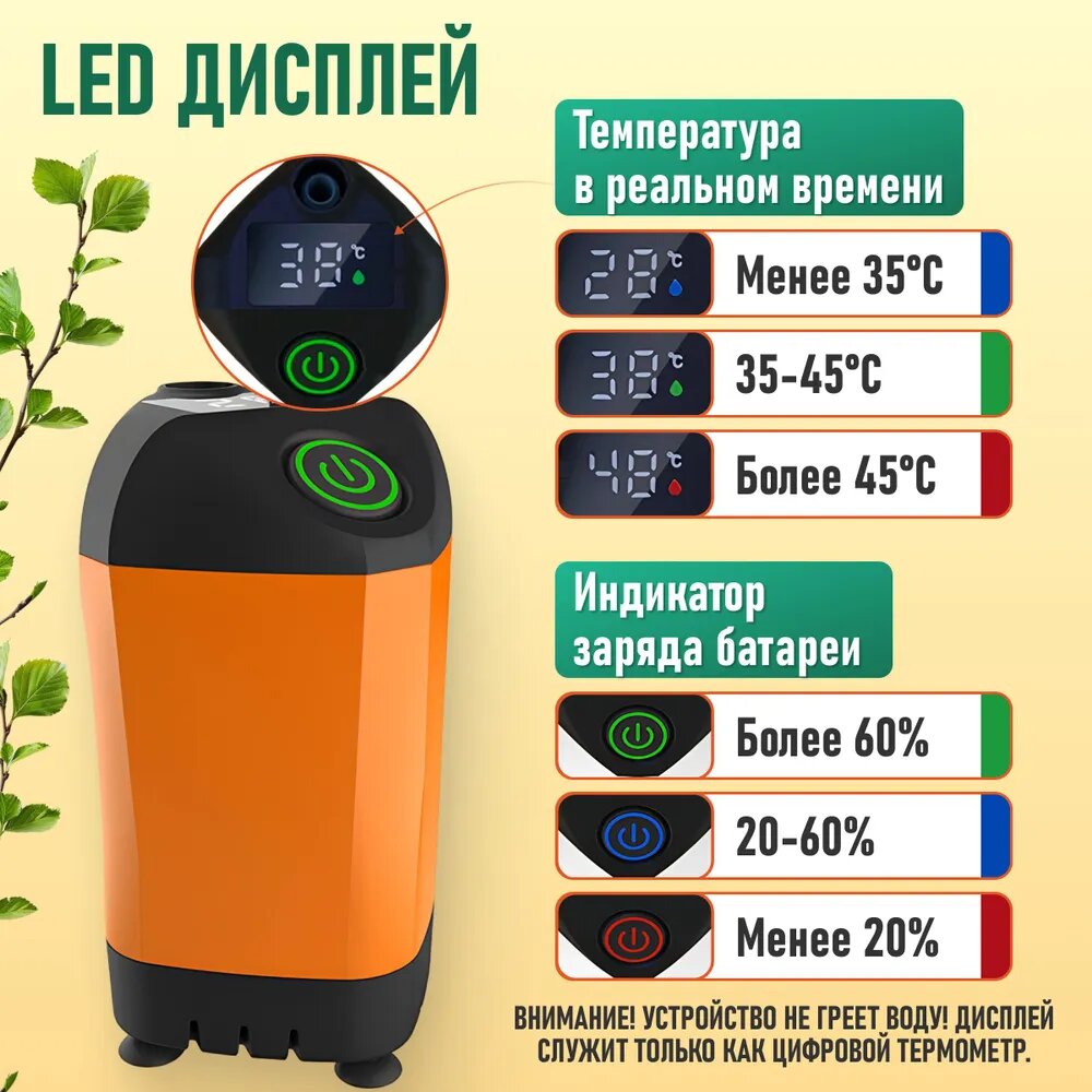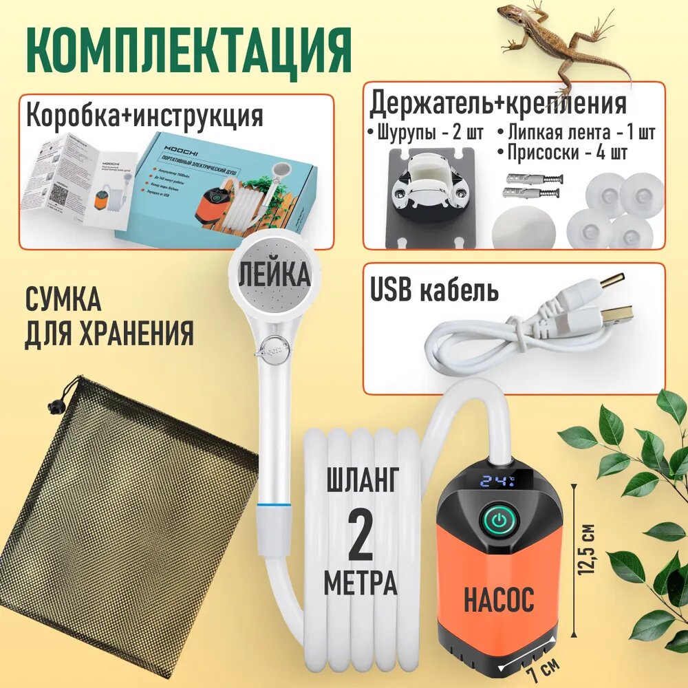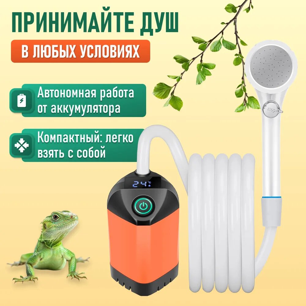 Переносной душ MOOCHI, аккумуляторный, с регулировкой температуры, оранжевый интересное: