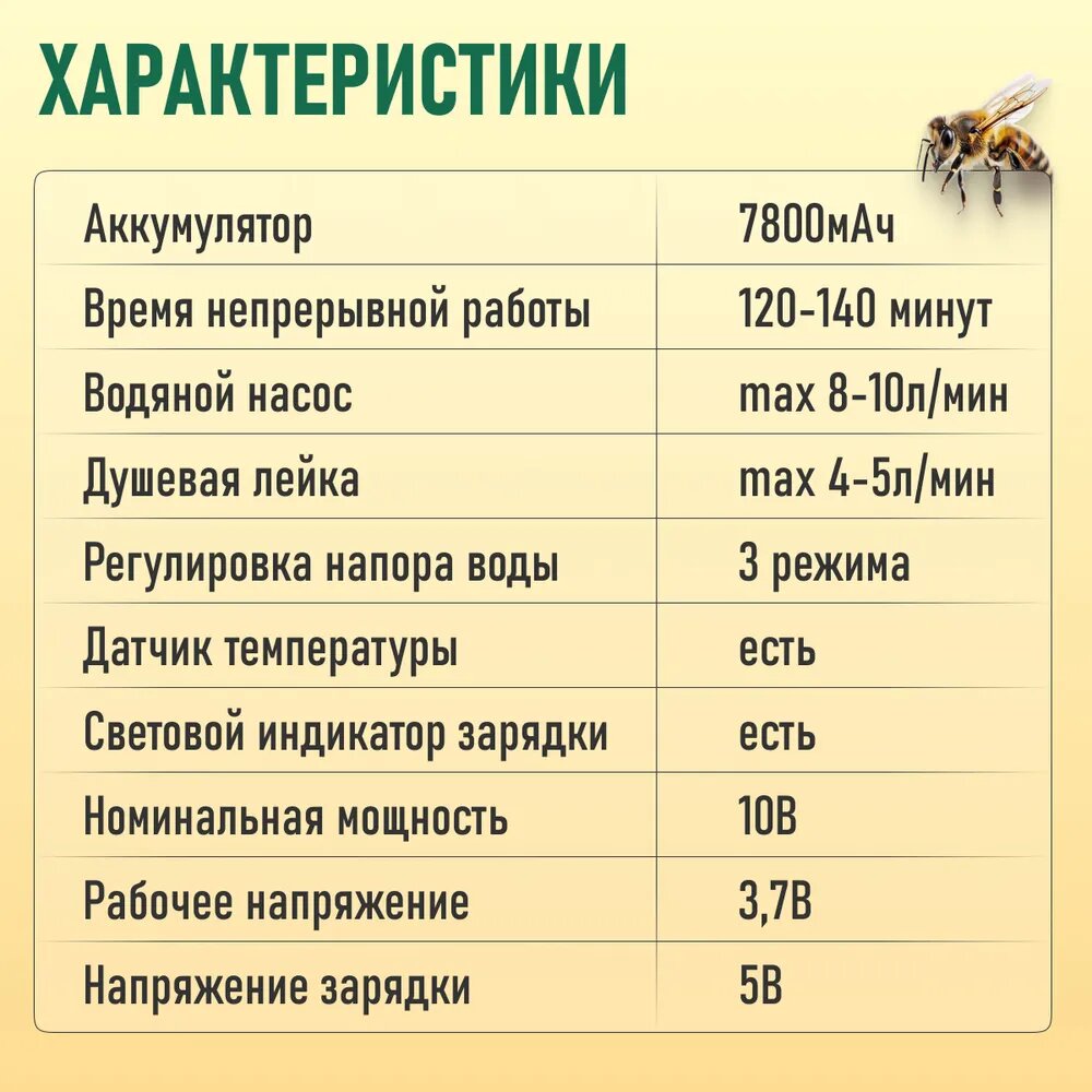Портативный душ с насосом для дачи и туризма, аккумуляторный