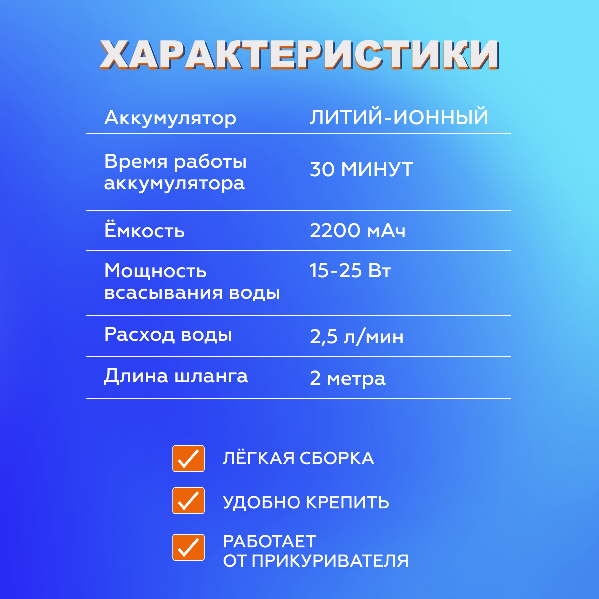 Портативный душ с насосом для дачи и туризма, аккумуляторный