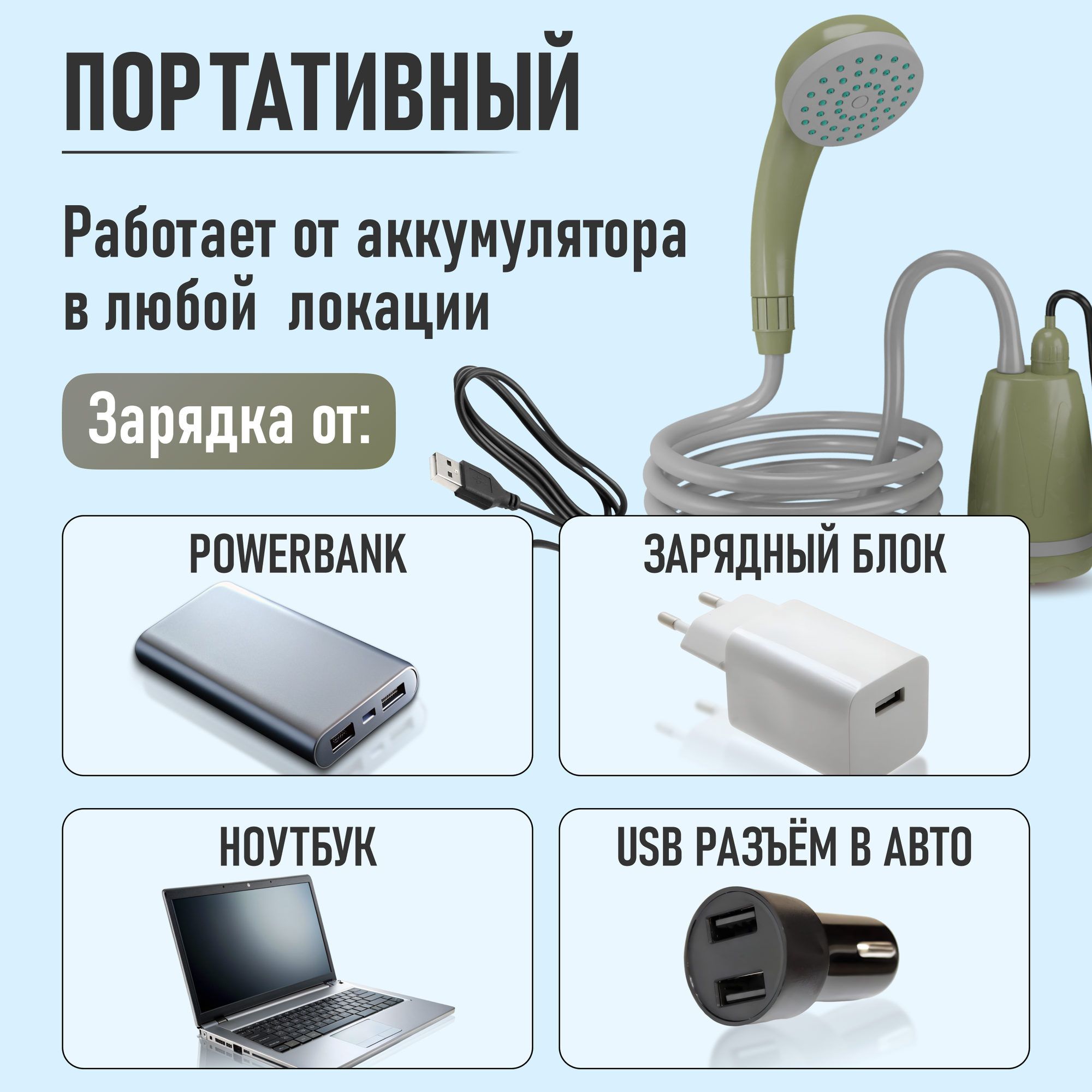 Портативный душ с насосом для дачи и туризма, аккумуляторный