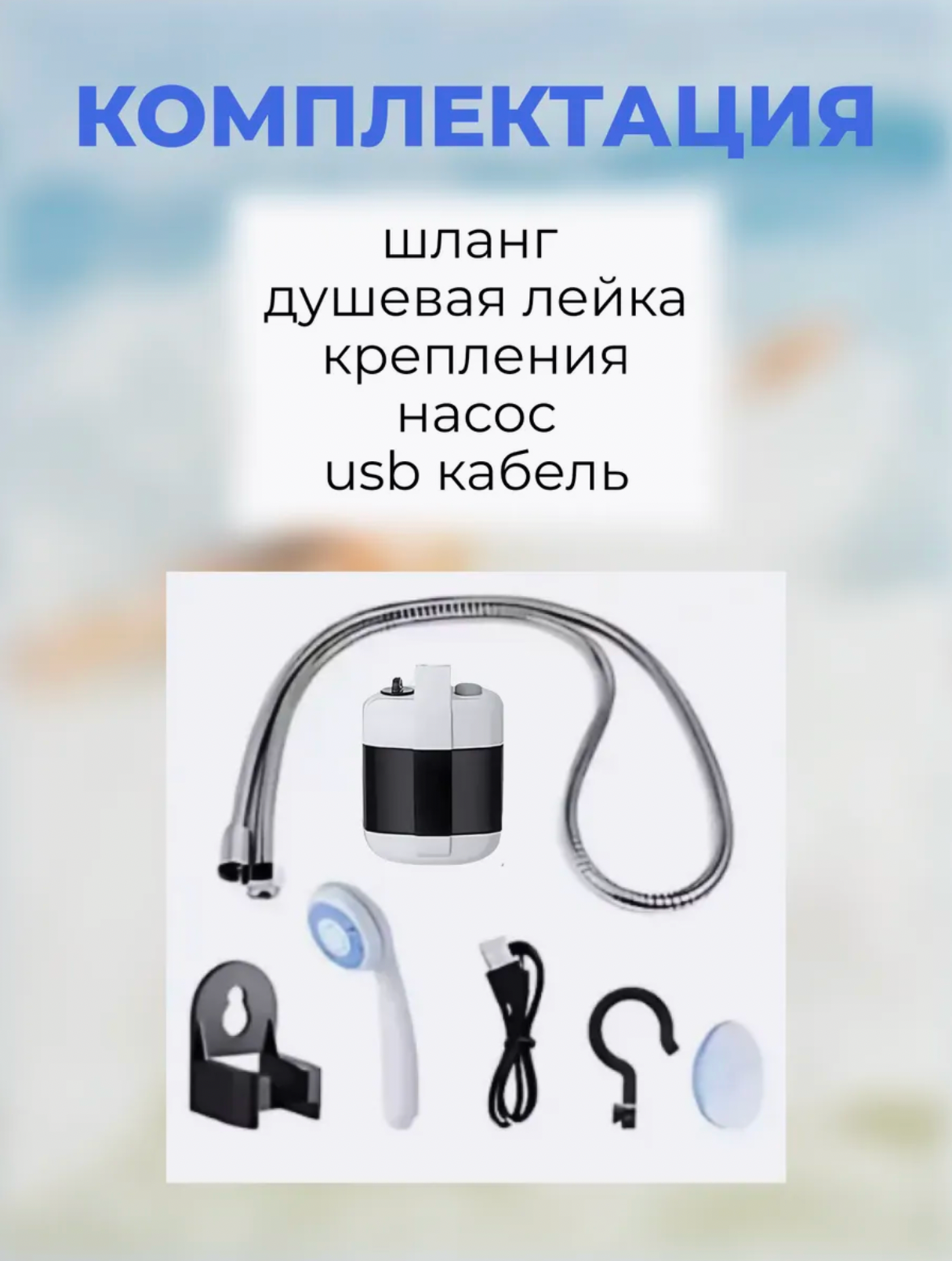 Портативный душ с насосом для дачи и туризма, аккумуляторный